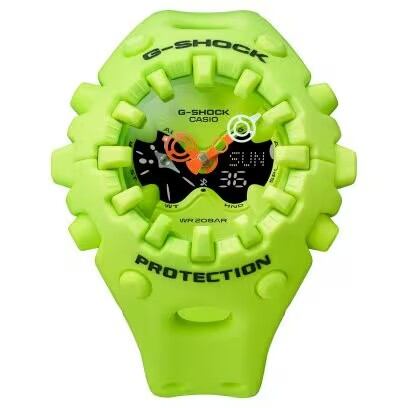 エッジの効いたパーツを組み合わせた有機的な外装フォルム、2つの穴が大きな特徴となっているショックリリース針など常識を覆す斬新な発想で、強さを求めて挑戦を続けるG-SHOCKのアイデンティティを形にしました。