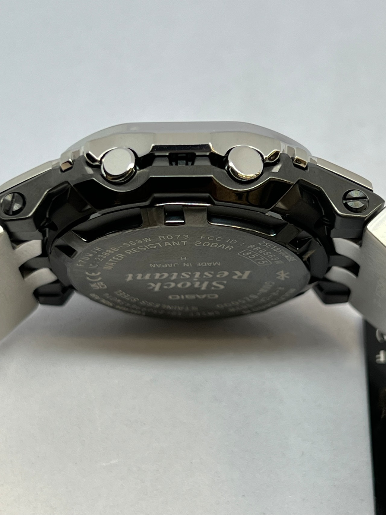 ベゼルとセンターケースを上下で連結した構造を開発。ケースサイドから見える造形が構造の美しさを強調。フルメタルながらG-SHOCKの耐衝撃基準をクリアし、気密性に優れたスクリューバックケースも採用しています。