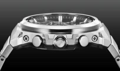 メタルベゼルが衝撃をガードし、カーボンファイバー強化樹脂製のケースがモジュールを保護。さらに、ガラス接着方式や小型モジュールにより耐衝撃構造を実現しつつ厚みや重量を削減。快適な着け心地と実用性を両立しています。