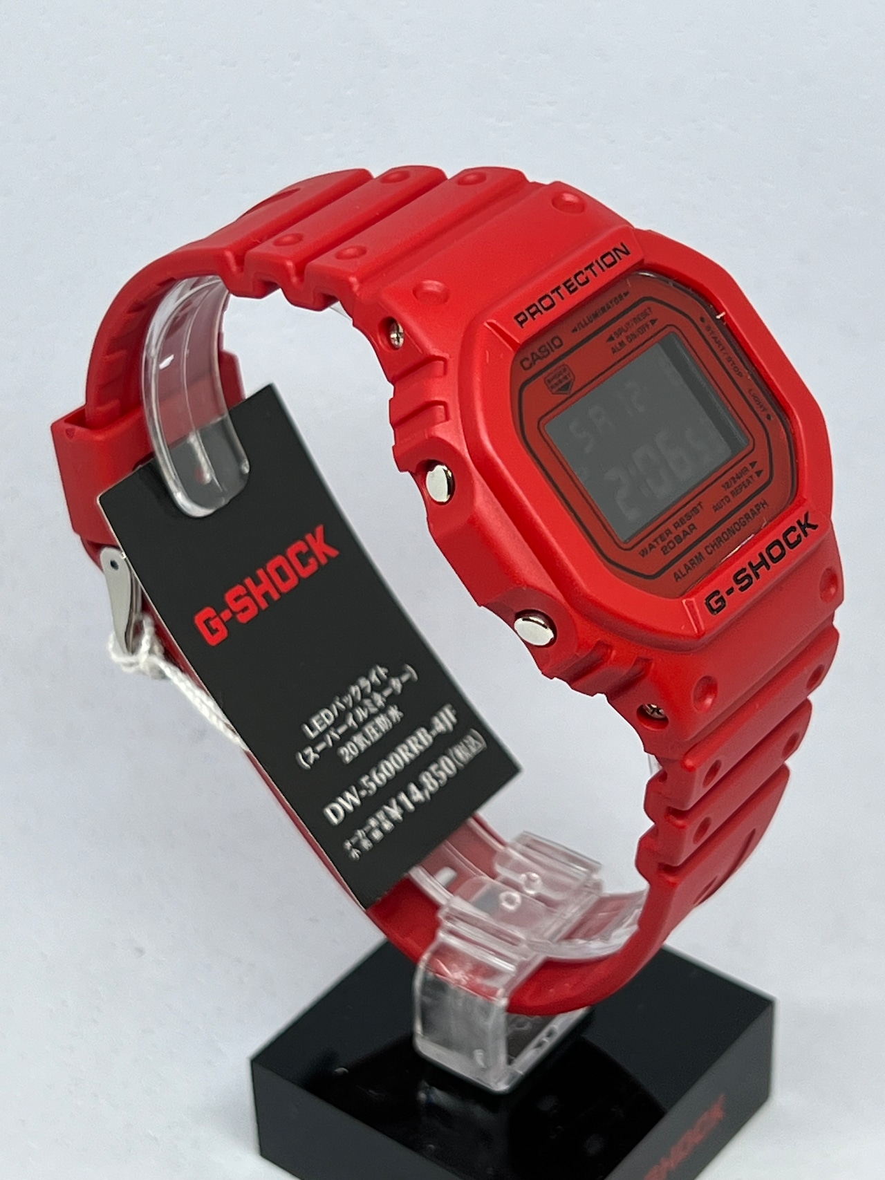 時計のフェイスに施された赤の色合いがバンドやベゼルと調和し、力強く質感のコントラストが印象的なデザインに仕上がっています。液晶は反転液晶で、各所にブラックを取り入れることでデザイン性を高めています。ブラックのアクセントカラーが赤を引き立て、G-SHOCKのアイデンティティを表現しています。