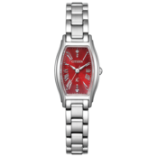 鮮やかなレッドの文字板とシルバーケースが印象的な、限定モデルです。インデックスには、軽やかで柔らかな印象のローマ数字を採用。12時と6時の位置には、輝くカットパーツを配置し、12時にはラボグロウン・ダイヤモンドを1ポイントあしらっているため、華やかさを演出しています。また、文字板の中央部分にはラメを施し、奥行きのあるジュエリーのような輝きを表現しています。華やかで上品なデザインに仕上げています。