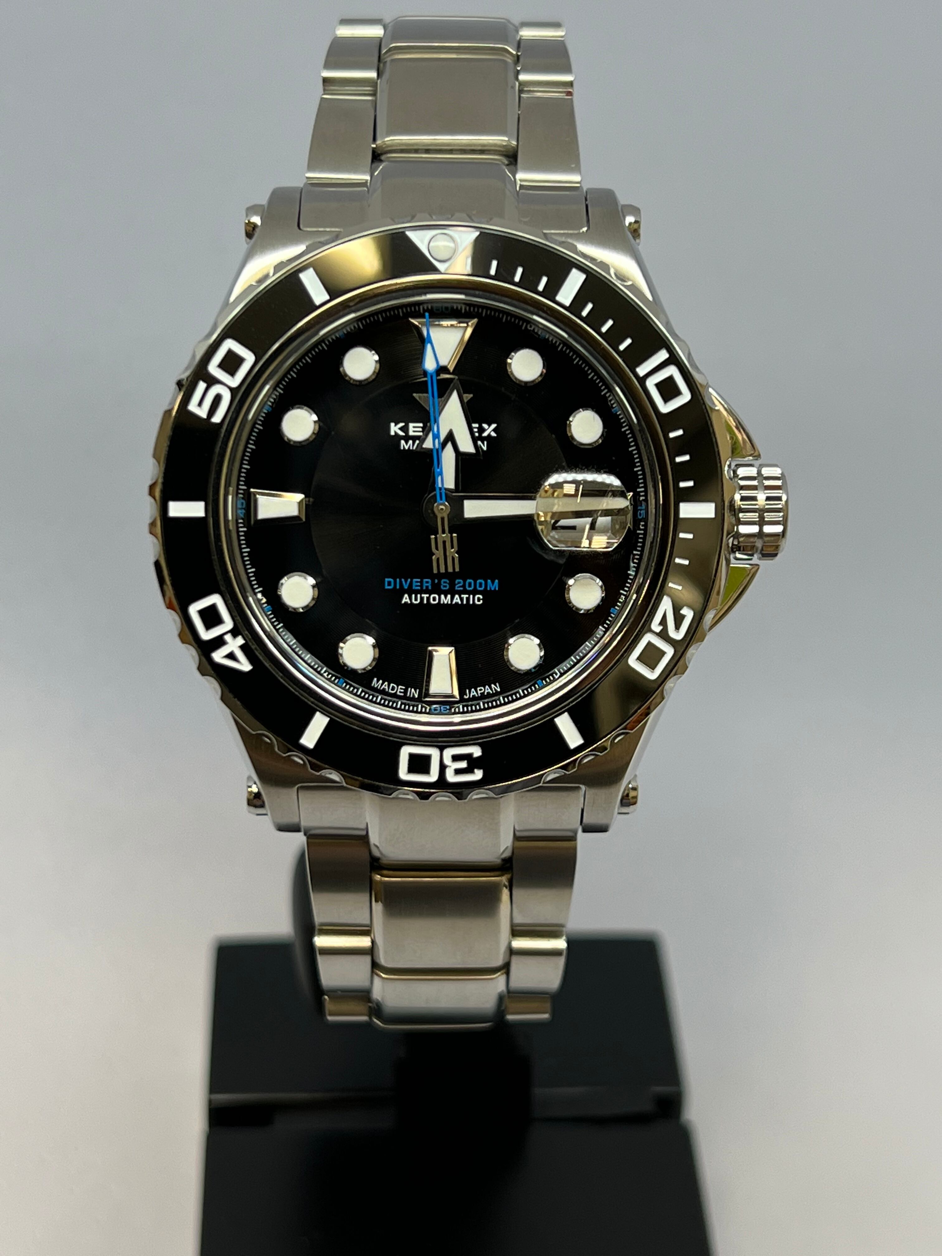 そのKENTEXからISO6425潜水時計規格をクリアする、200M防水ダイバーズ「マリンマン シーホース」から、定番のブラックベゼル・メタルバンドをピックアップ。SUS316Lケースにサファイアガラス、ムーブは安心のSEIKOのNH35を搭載。