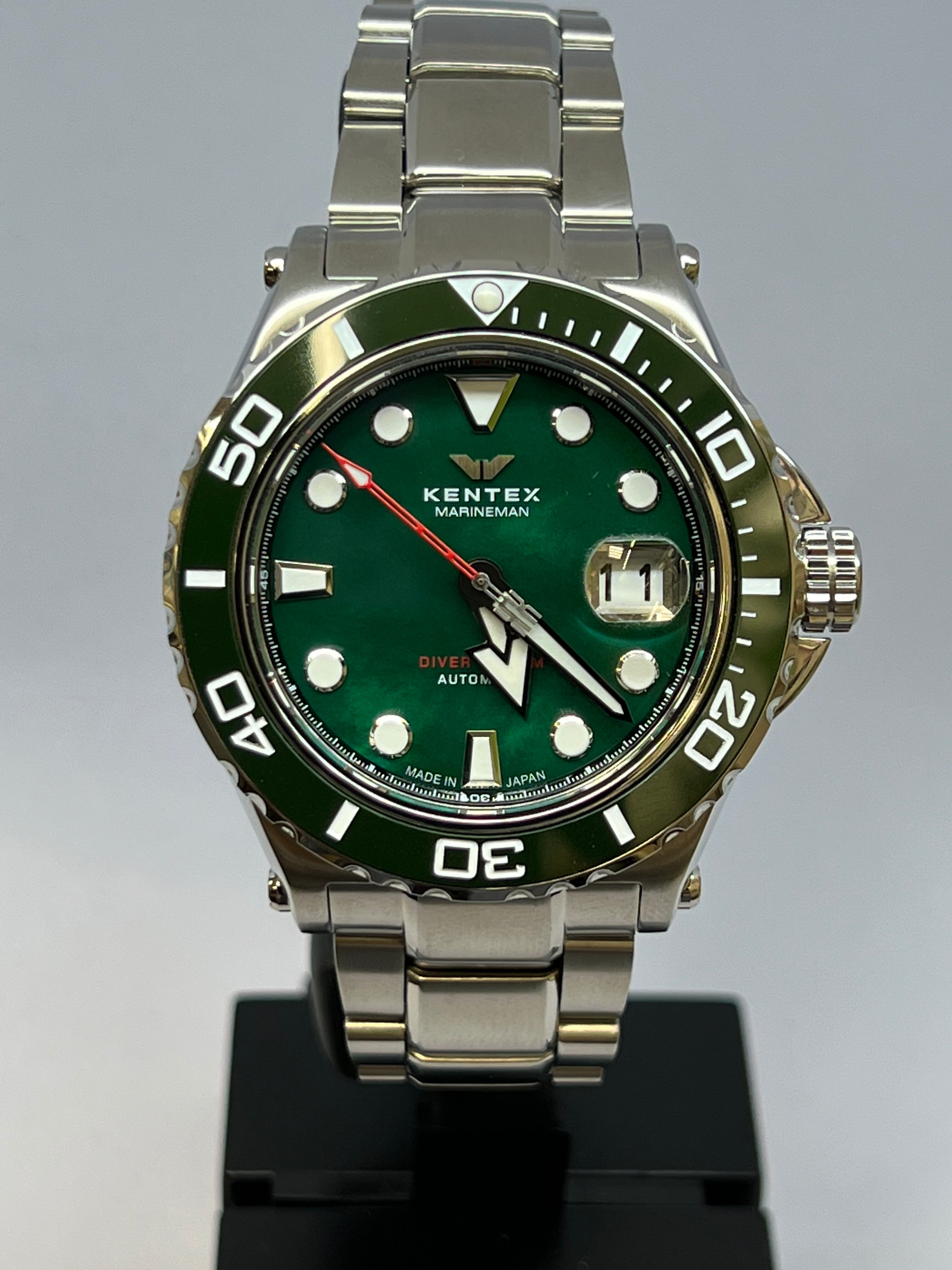 そのKENTEXからISO6425潜水時計規格をクリアする、200M防水ダイバーズ「マリンマン シーホース」から、定番のブラックベゼル・メタルバンドをピックアップ。SUS316Lケースにサファイアガラス、ムーブは安心のSEIKOのNH35を搭載。