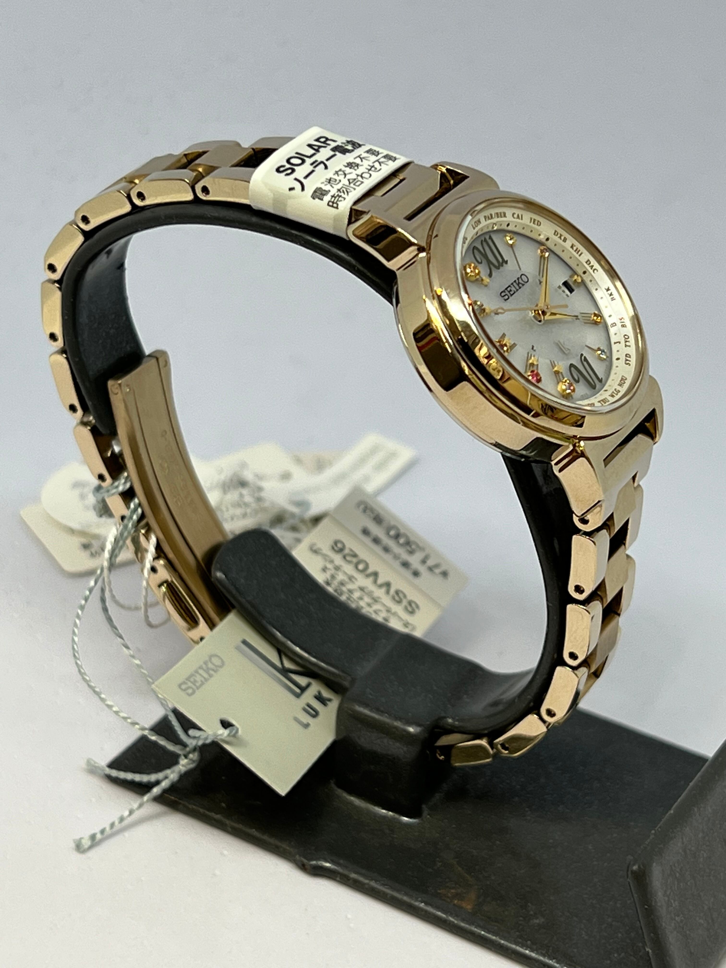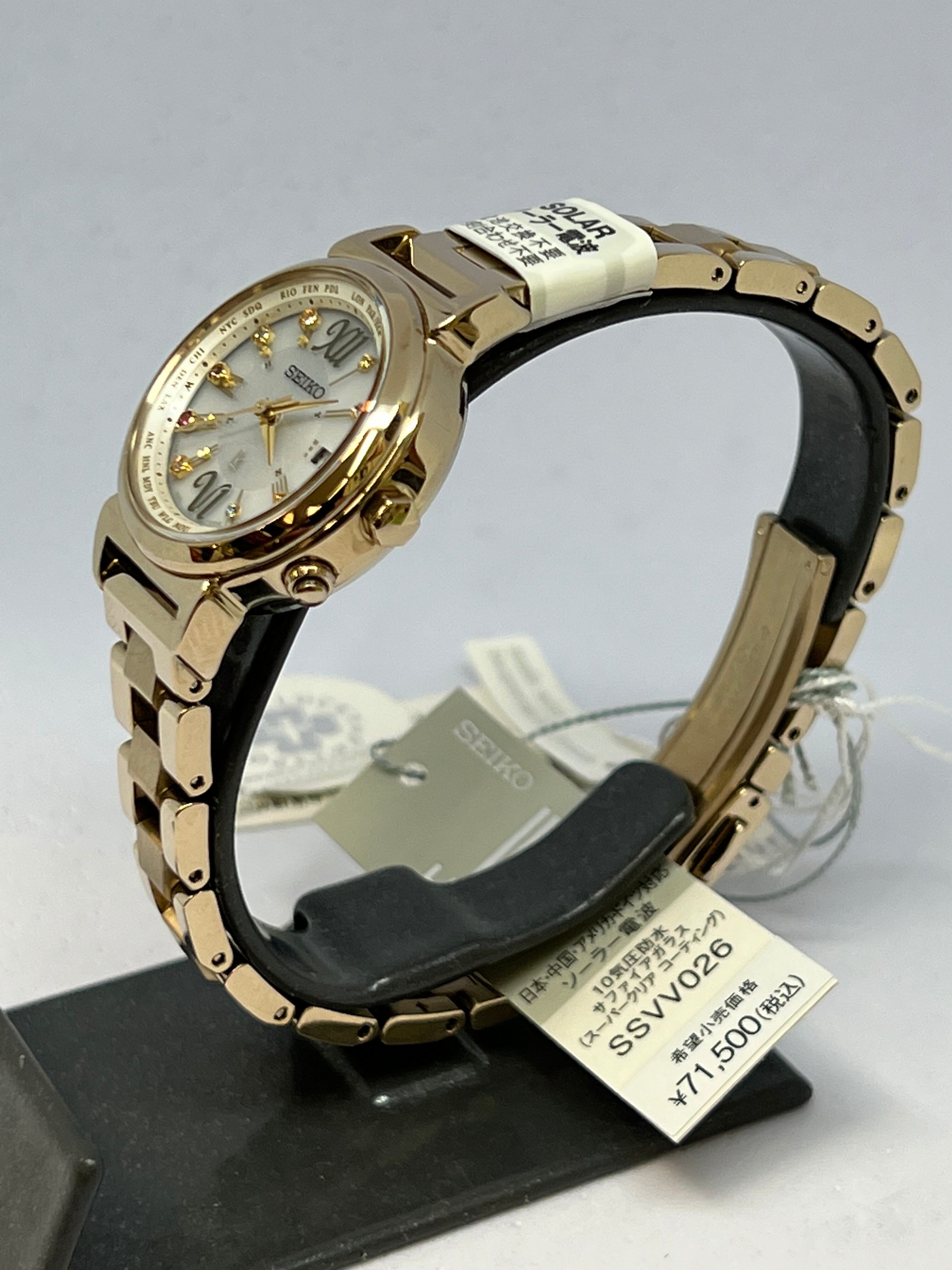 お色はシャンパンゴールドで文字盤も天然石をあしらっております。