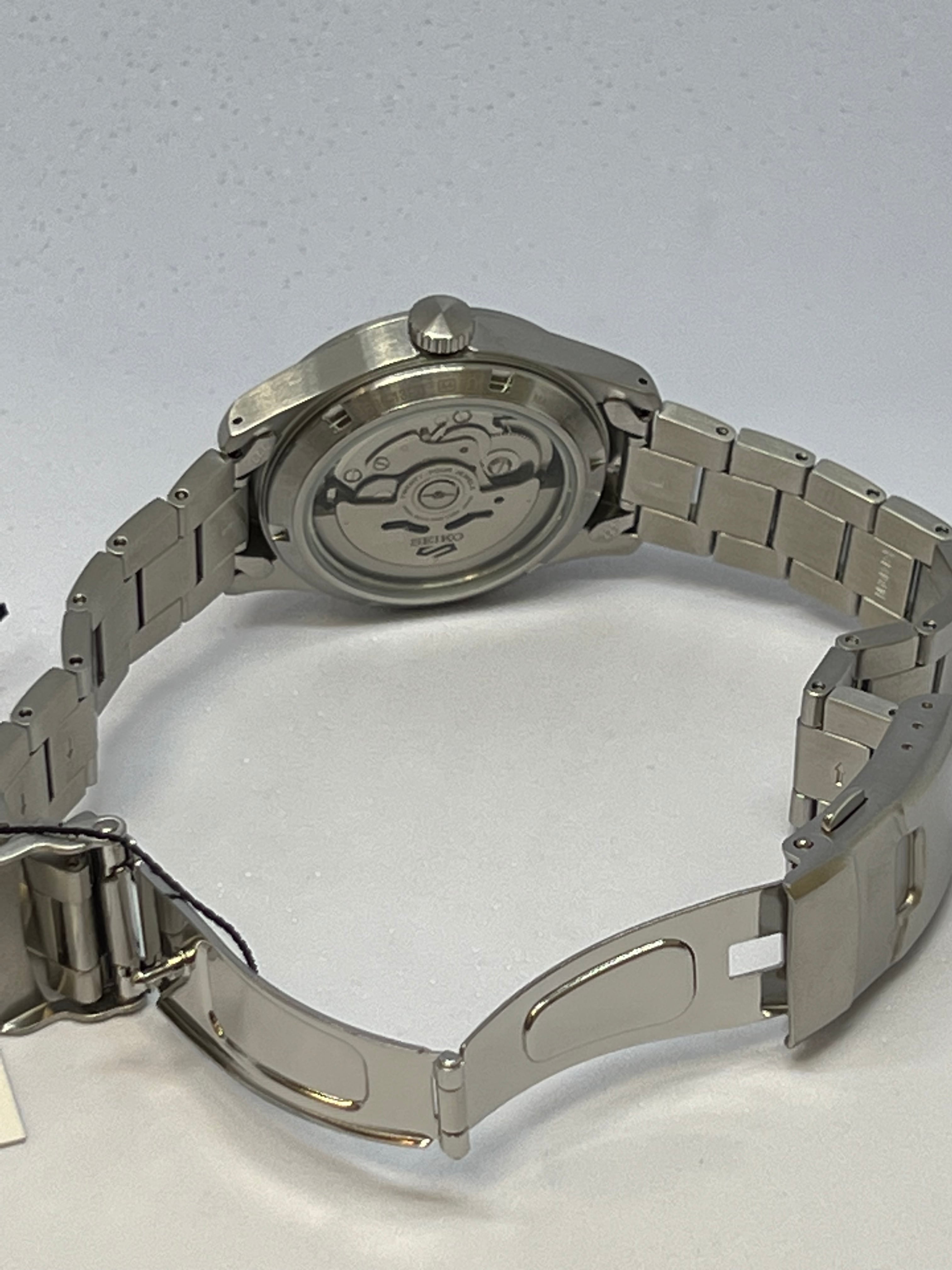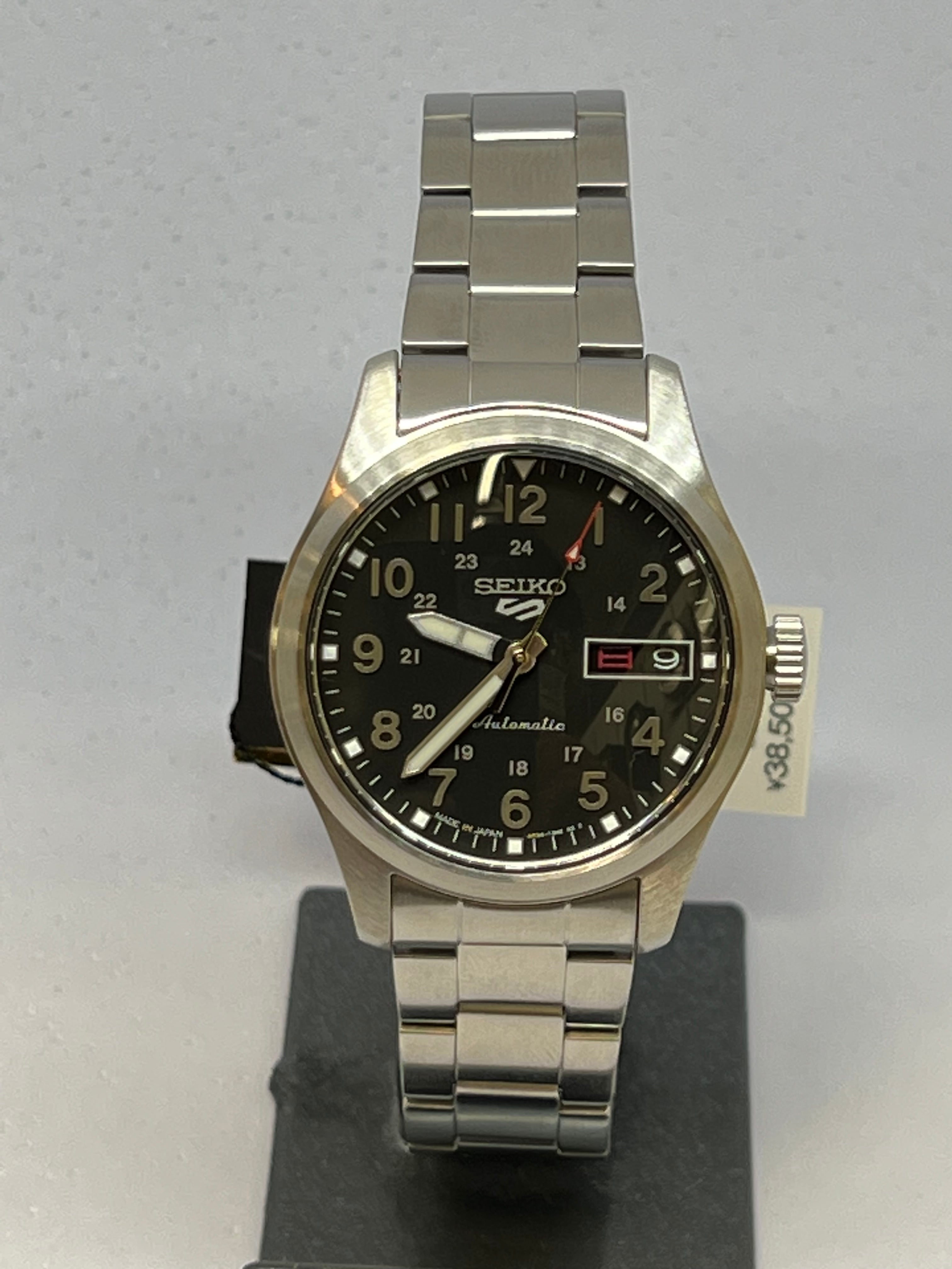 5スポーツになって若々しいスタイルになって登場です!黒の文字盤とメタルバンドがマッチしてスーツスタイルからカジュアルまでこなせる優れものです。(^_-)-☆