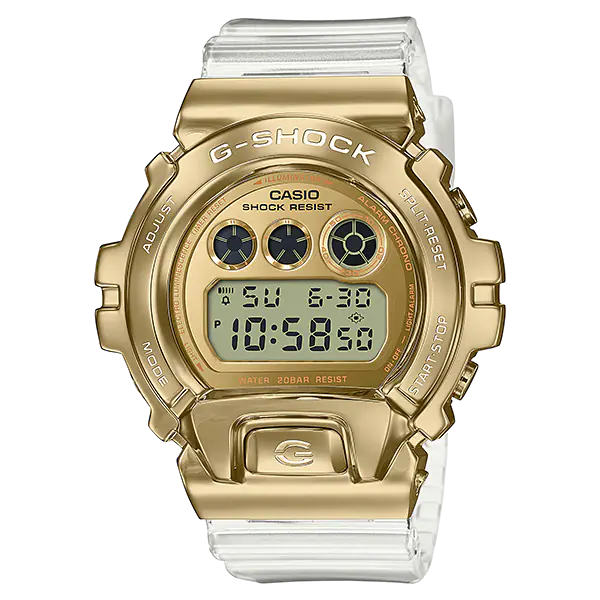 バンドは透明のクリア樹脂でゴールドのベゼルを際立たせるデザインです!