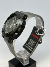 カラーIPのホーニング加工されたメタルベゼルに、マットな質感のスケルトンバンドがクールな仕上がりのデザインです(^^)