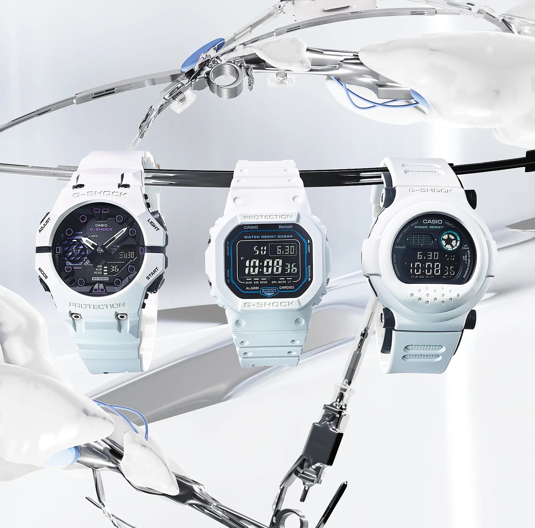 ベゼルには蓄光塗料による文字埋めを施し、暗闇でG-SHOCKロゴが浮かび上がる仕様になっており、SF感盛りだくさんです!