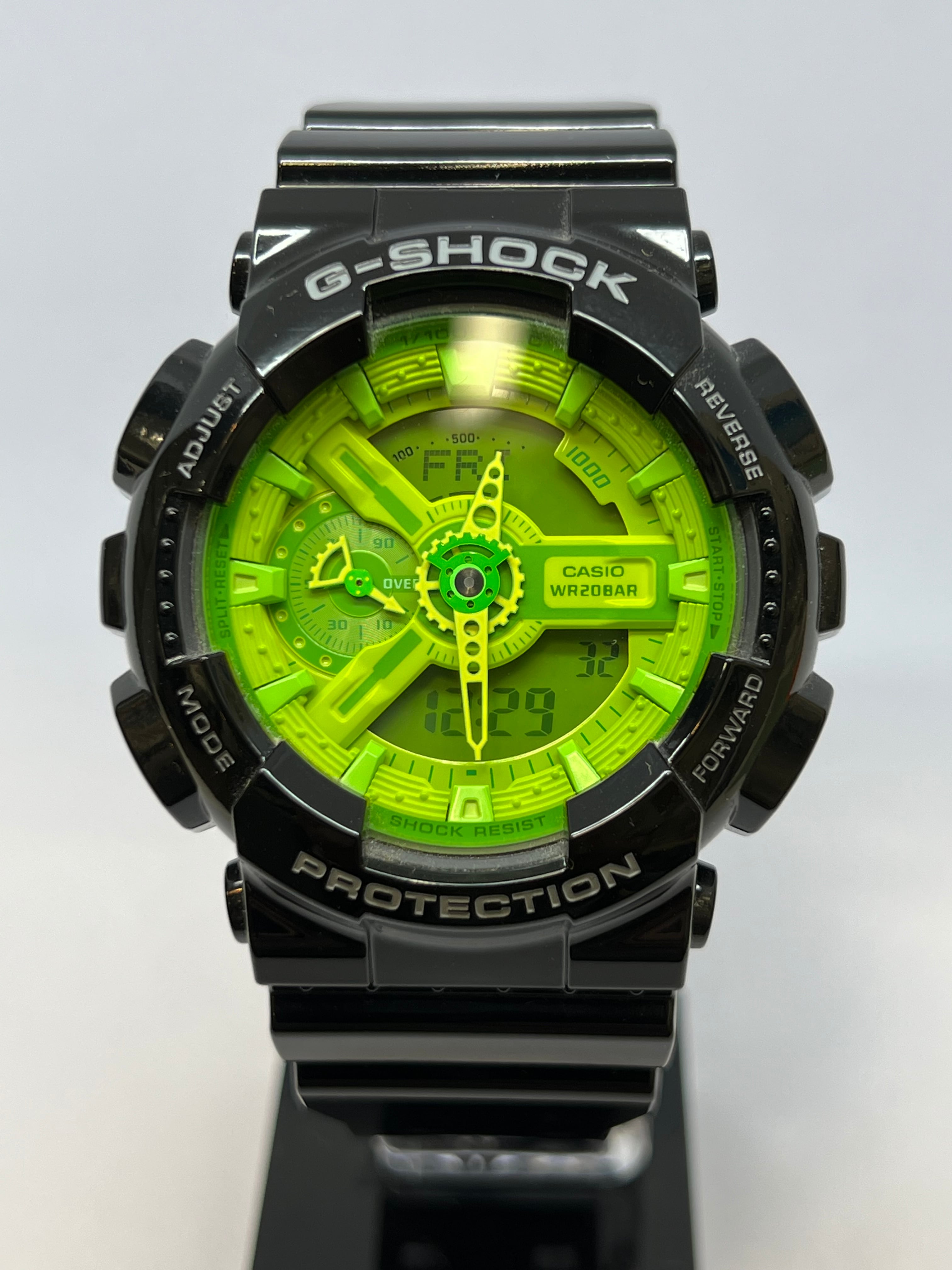 全体のブラックカラーがベゼルのライトグリーンを際立たせているので、コーディネートのアクセント使いとしてオススメです(*^^*)