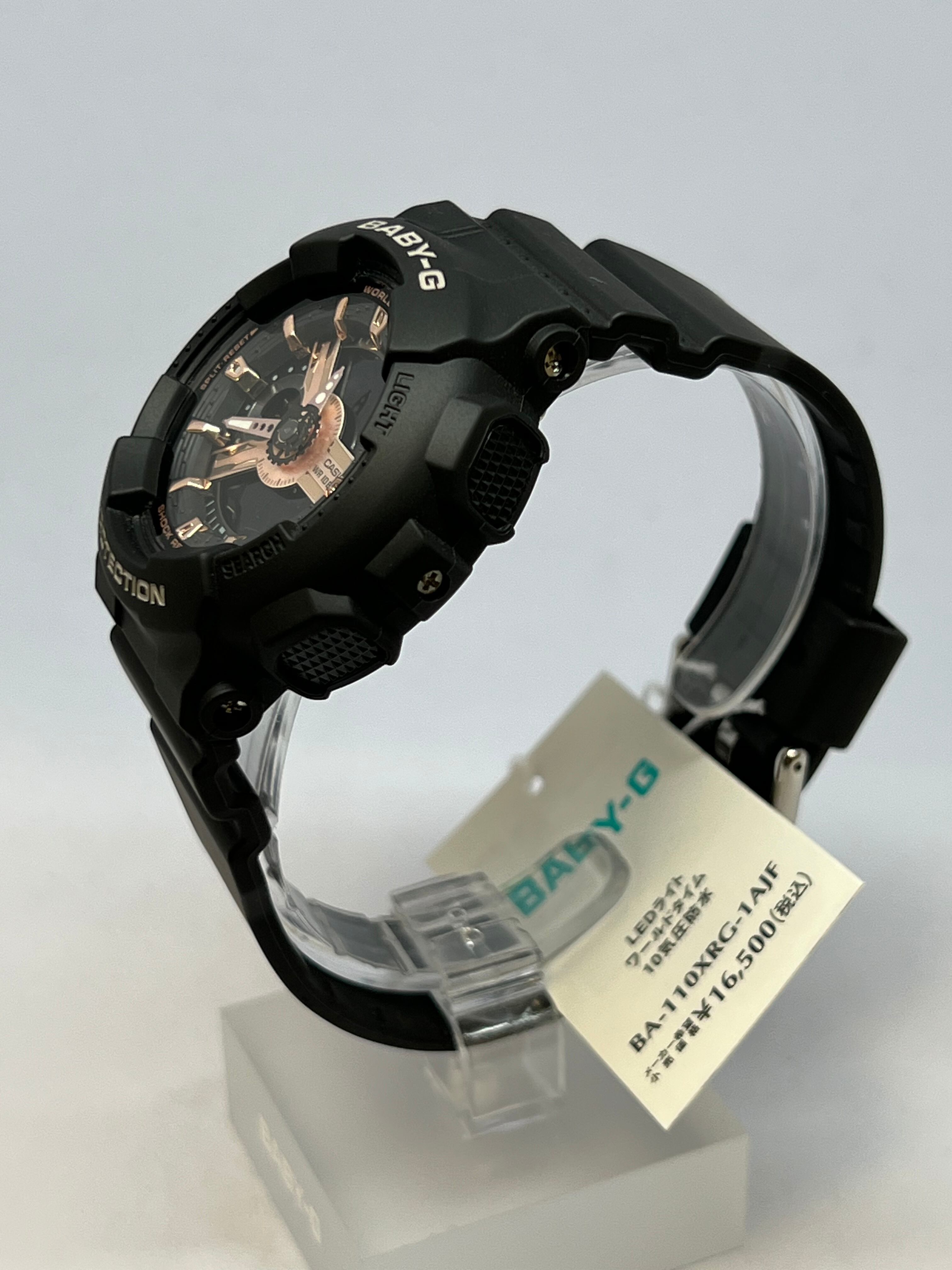 アクティブな女性のためのカジュアルウオッチBABY-G。G-SHOCKの人気モデル、GA-110のデザインにインスパイアされたBA-110シリーズです。