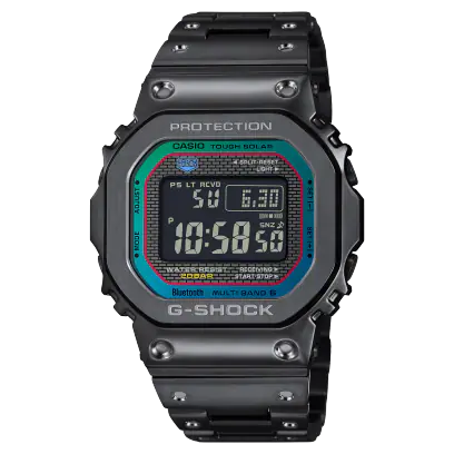 1983年の誕生以来タフネスを追求し、40周年を迎えたG-SHOCKのフルメタルシリーズから、レインボーカラーをアクセントにしたモデルです。