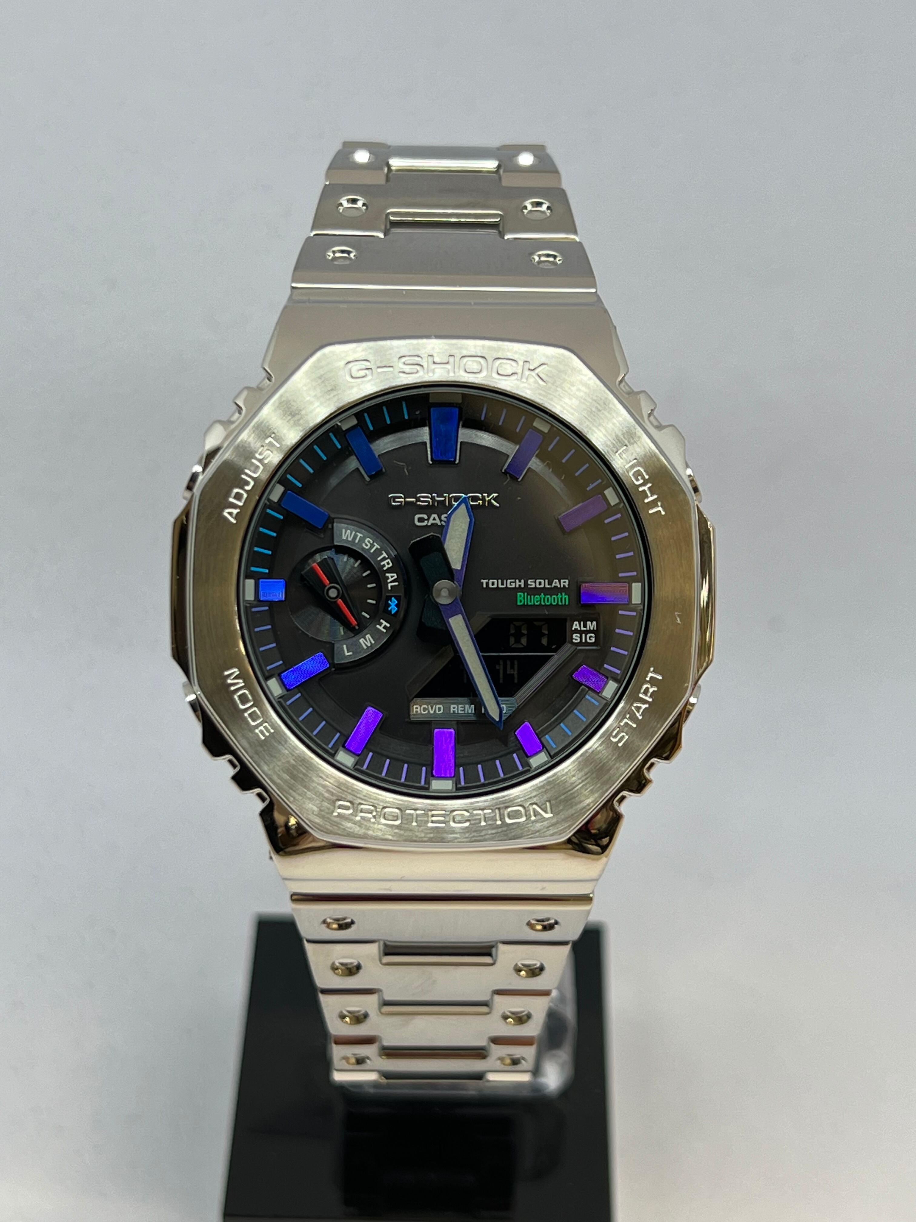 1983年の誕生以来タフネスを追求し、40周年を迎えたG-SHOCKのフルメタルシリーズから、レインボーカラーをアクセントにしたモデルです。