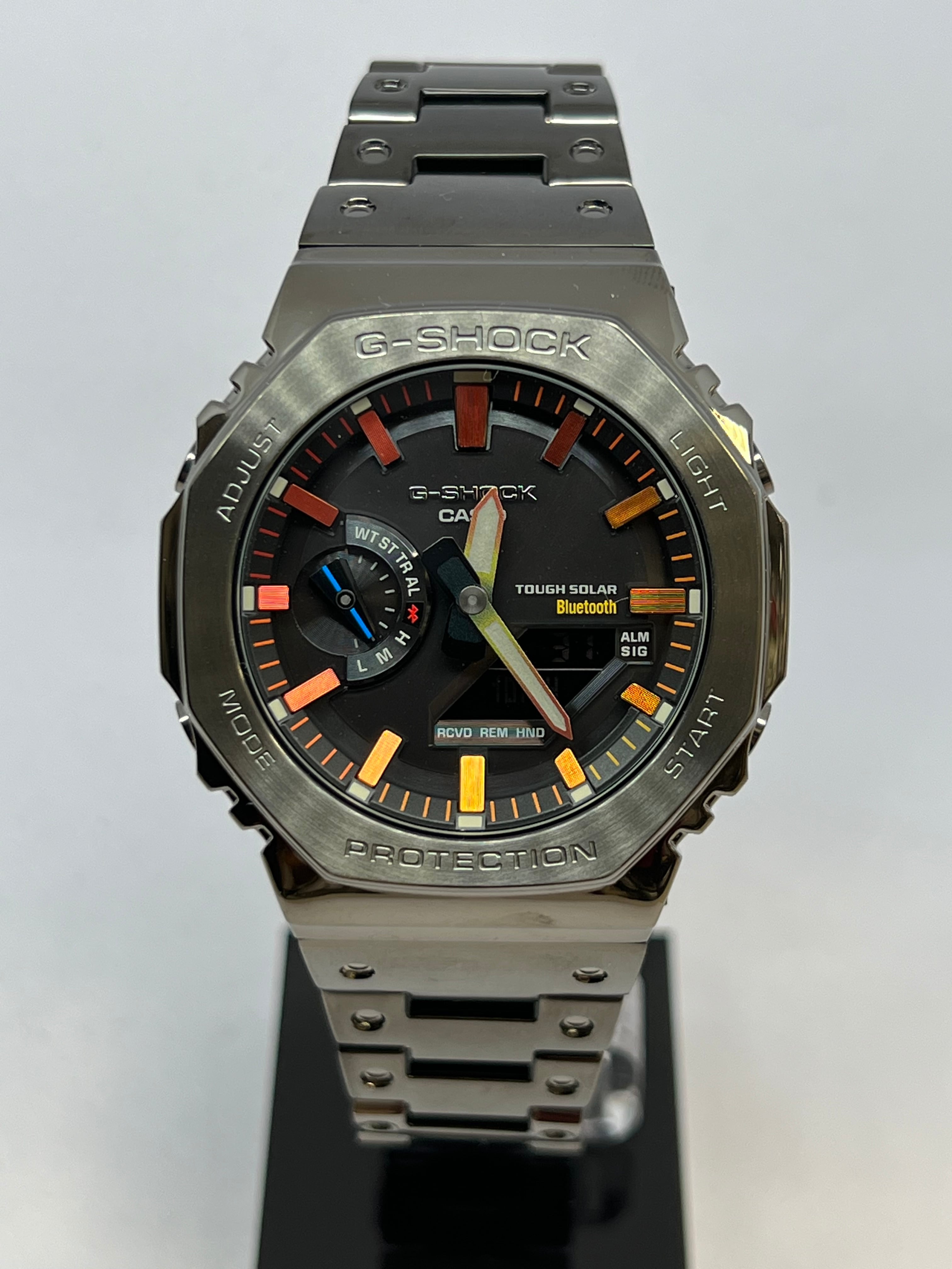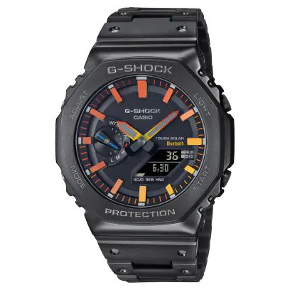1983年の誕生以来タフネスを追求し、40周年を迎えたG-SHOCKのフルメタルシリーズから、レインボーカラーをアクセントにしたモデルです。
