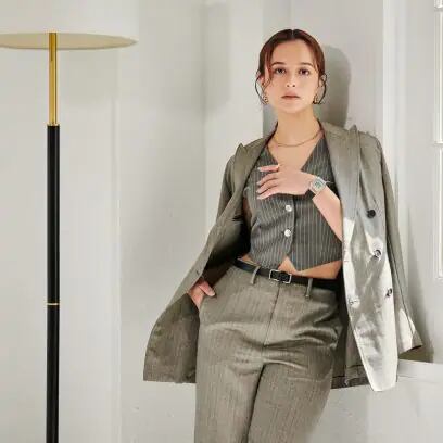 シンプルなブラックのバンドにライトイエローゴールドのメタルベゼルを合わせました。メタルベゼルには立体的な波型模様を施し、アクセサリーのような上質で洗練された質感に。シルバーのメタリックプリントの文字板を採用し、ミニマルで落ち着いた印象に仕上げました。落ち着いたコーディネートのアクセントになるウオッチです。
