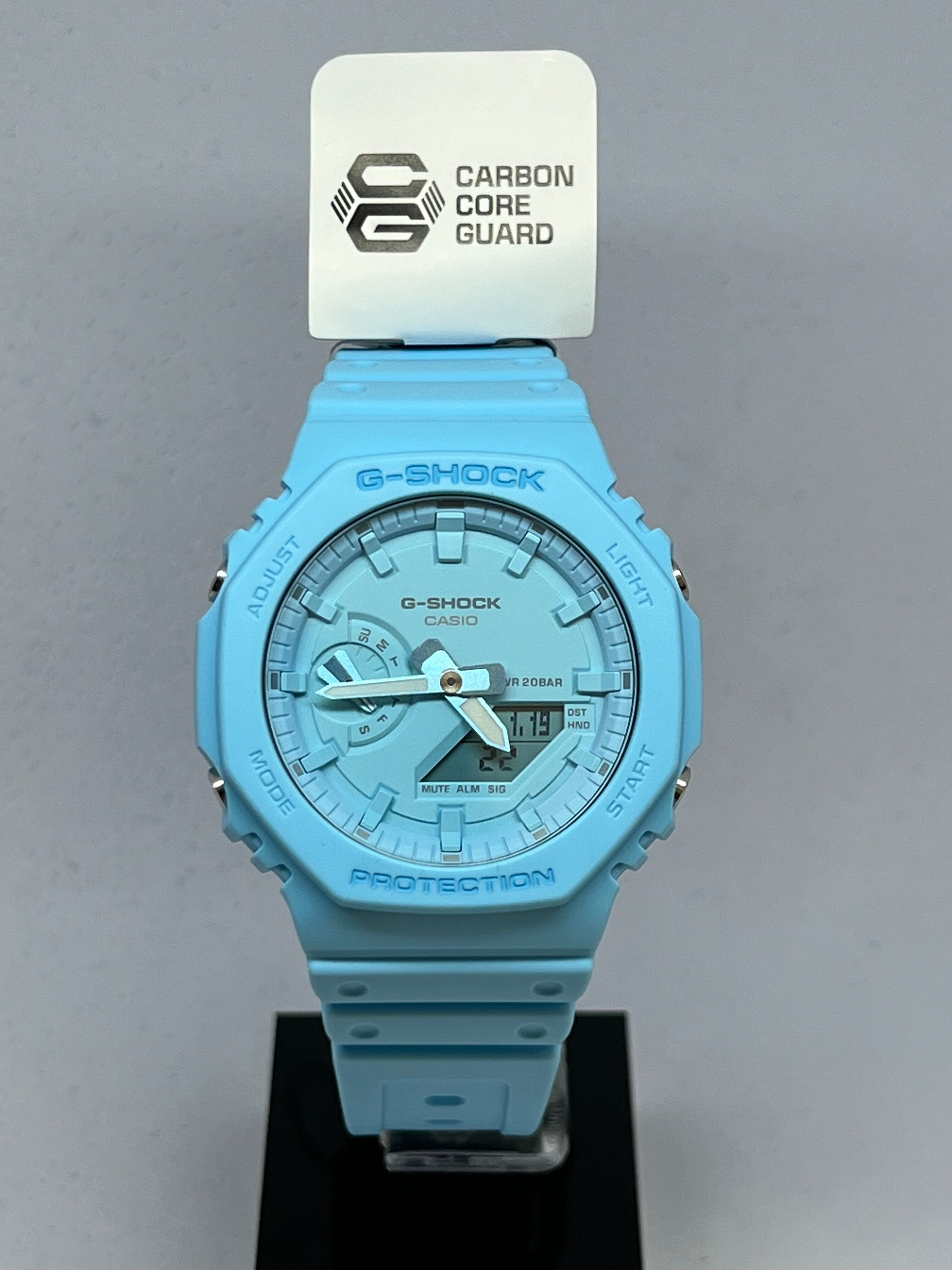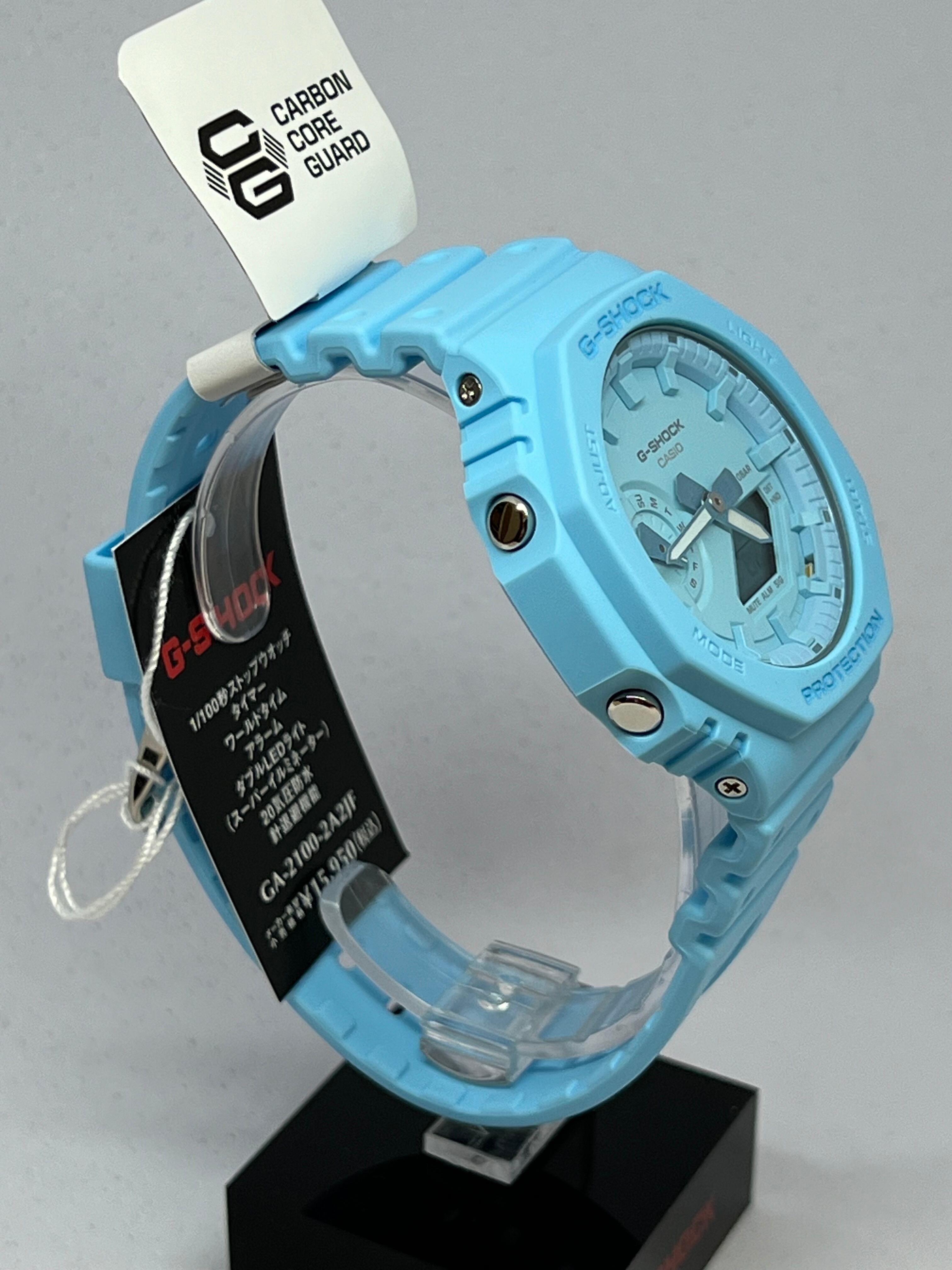 ベースモデルはオクタゴンベゼルのGA-2100を採用。人気のカラーリングをケース、ベゼル、バンド、文字板の各パーツに至るまでワントーンで統一し、フェイスも奥行きのあるモデルに仕上げました。
