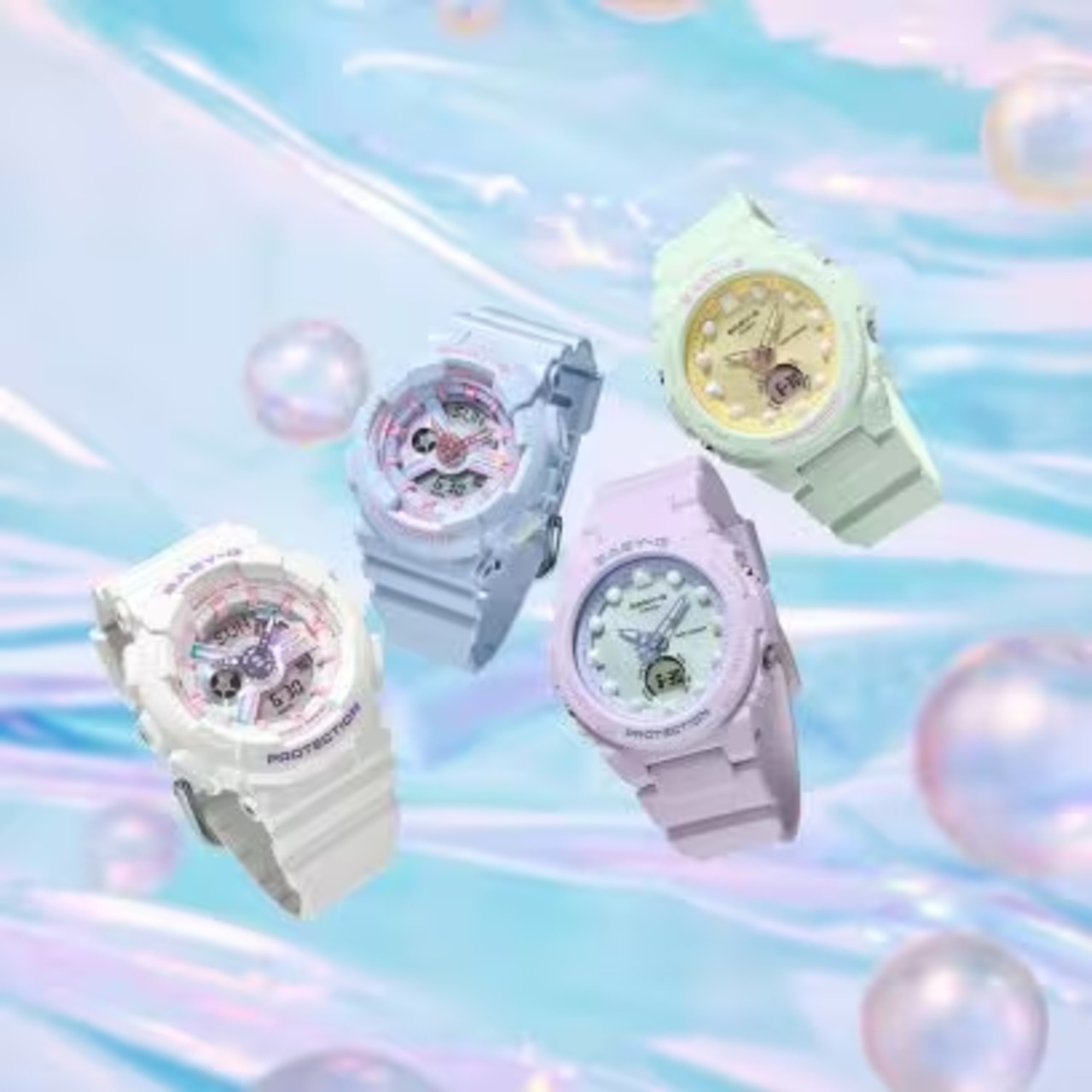 アクティブな女性のためのカジュアルウオッチBABY-Gから、バーチャルな世界観をデザインに落とし込んだ時計です。