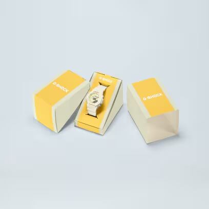 ベースモデルは、GMA-S2100を更に小型化したGMA-P2100。バンドの長さも短くすることで、華奢な手元によりフィットするように装着性を高めました。ベゼル、バンドにはバイオマスプラスチックを採用。