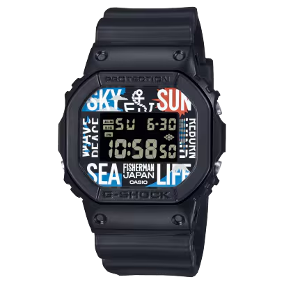 1983年の発売以来、飽くなき挑戦と強さを求めるG-SHOCKから、石巻を拠点とする漁師グループ「FISHERMAN JAPAN」の10周年を記念するコラボレーションモデルです。宮城県石巻を舞台としたアート、音楽、食の総合芸術祭を主催する「Reborn-Art Festival」がプロデュース。常にチャレンジし新しい価値を創造し続けるFISHERMAN JAPANのロゴを手掛けた古平正義さんデザインの大漁旗をモチーフにしたG-SHOCKです。