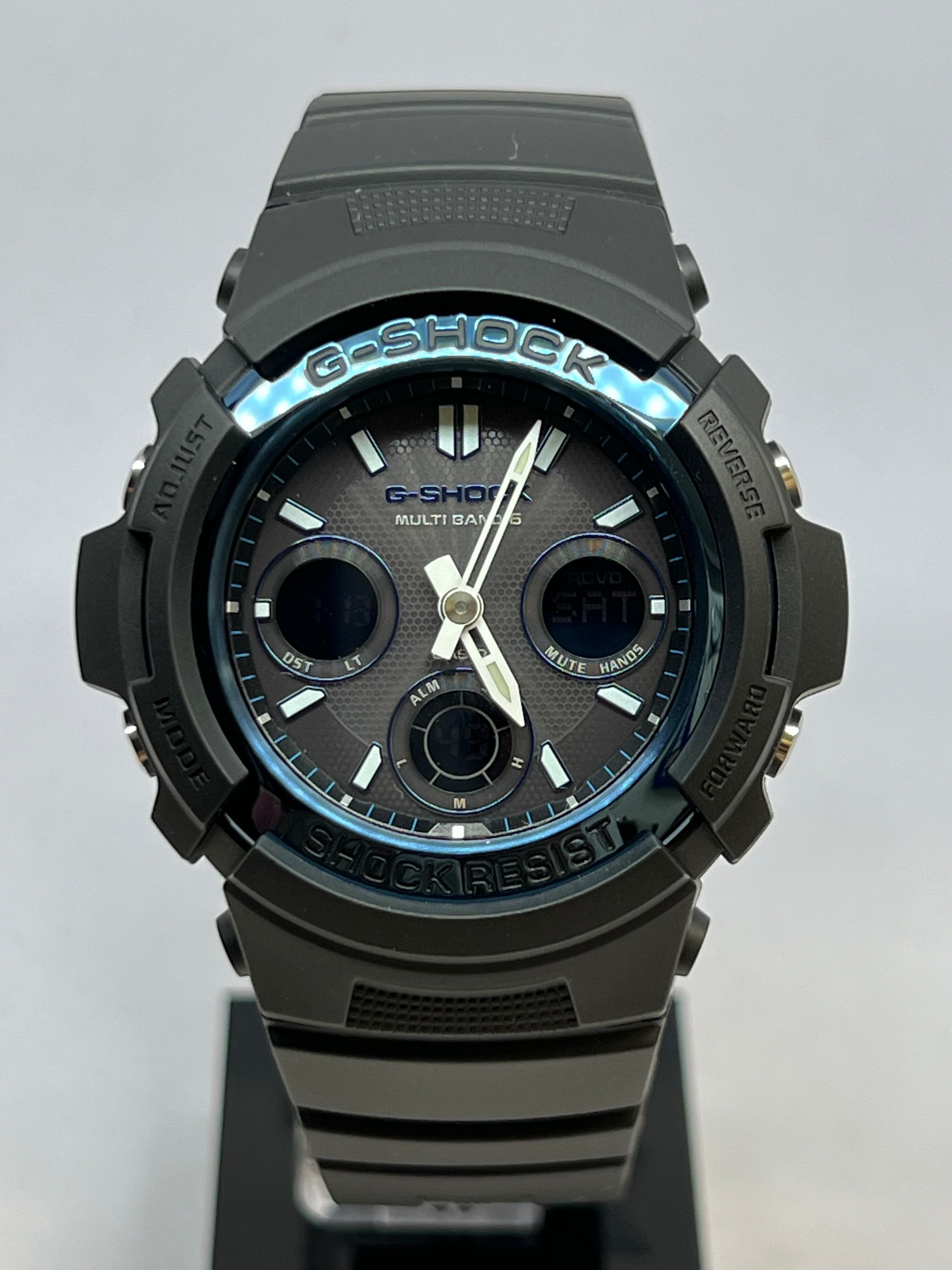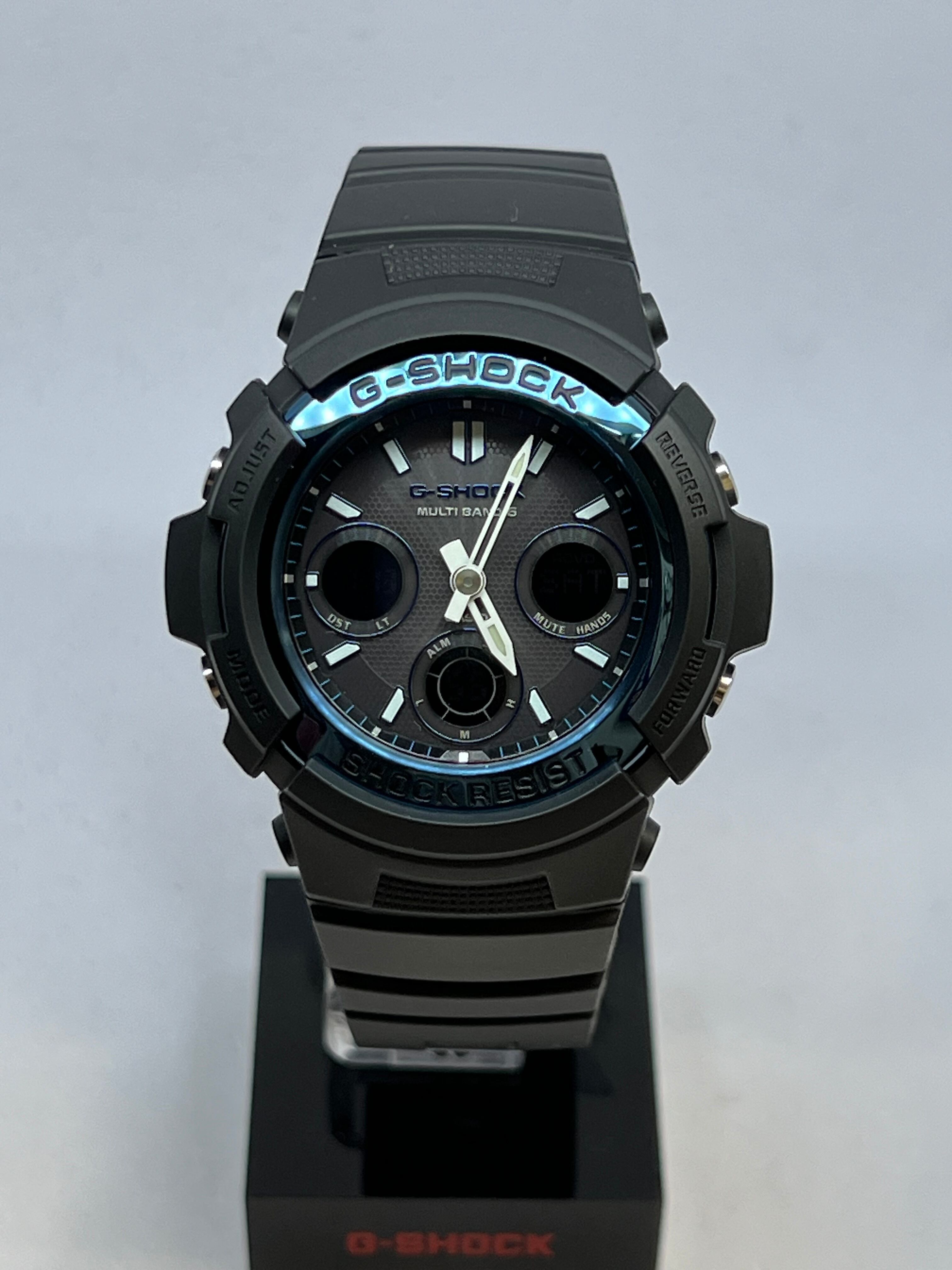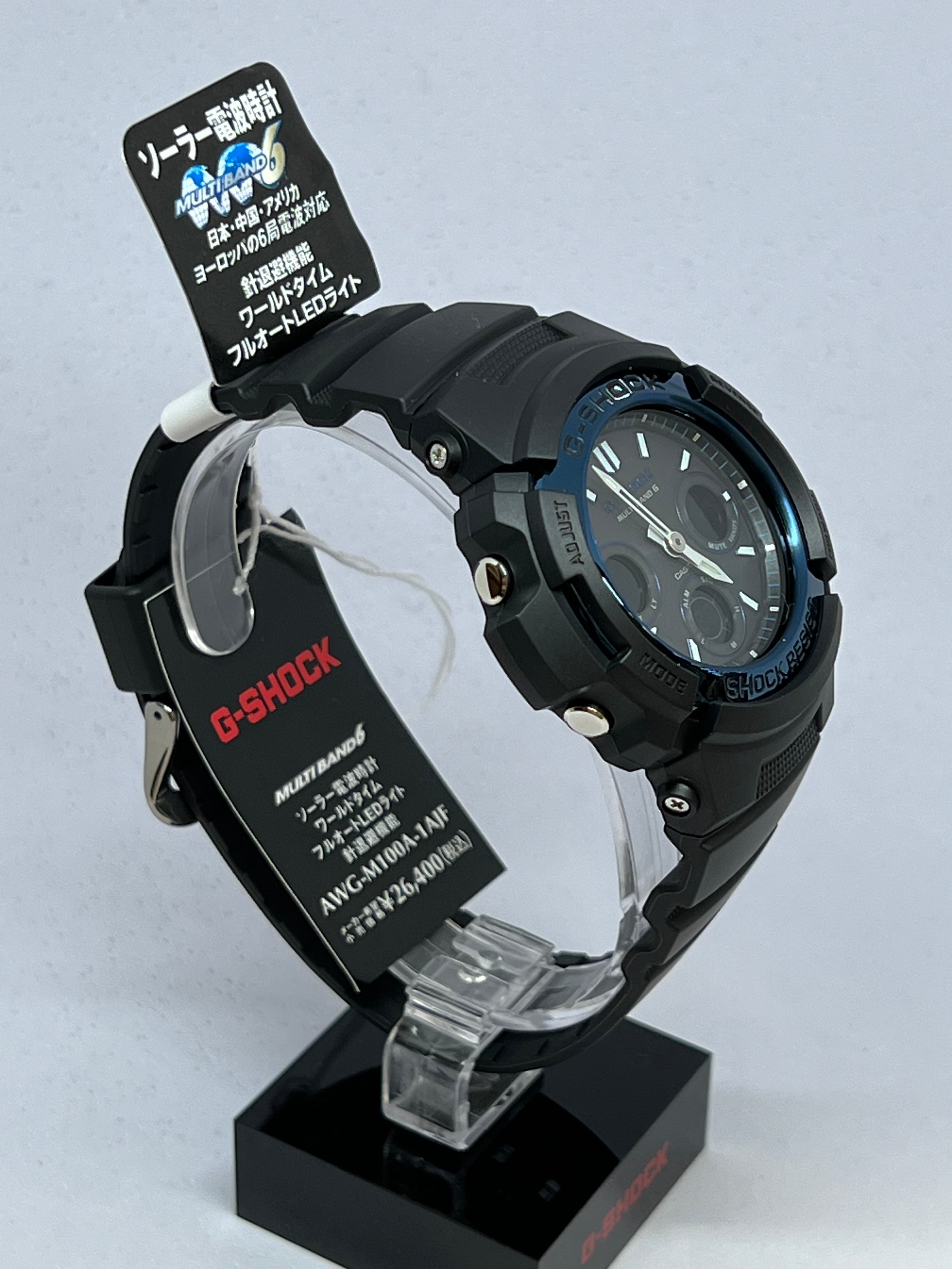 マルチバンド6を搭載した電波ソーラーG-SHOCKのスタンダードモデルです。人気のブラック×ブルーを使用し、実用的な月日、曜日一括表示を備えたベーシックなデザイン。利便性を追求し、計測タイム確認時などに針が液晶表示の上に重なって見づらい場合、簡単なボタン操作で針を一時的に移動させる針退避機能も搭載しました。基本性能を磨き上げたデジタルとアナログのコンビネーションモデルです。