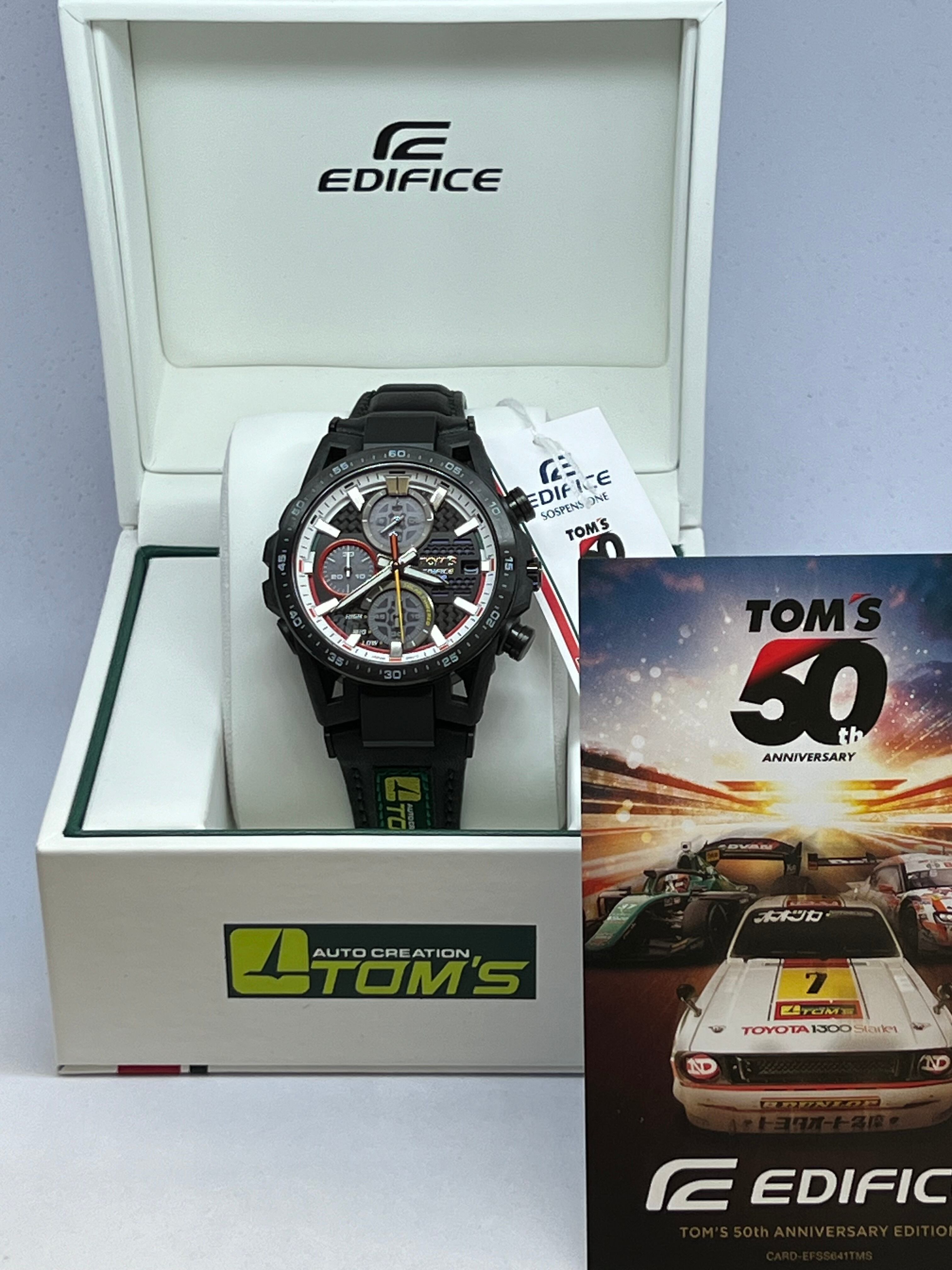 高機能モータースポーツウオッチEDIFICEから、名門レーシングチームTOM’Sの設立50周年を記念した「EDIFICE TOM’S 50TH ANNIVERSARY EDITION」です。