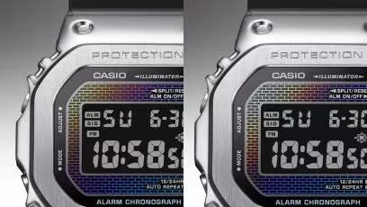 1983年の発売以来、飽くなき強さを求めて進化を続けるタフネスウオッチG-SHOCKから、ガラス板に蒸着を施したRainbow Brick Wall seriesです。