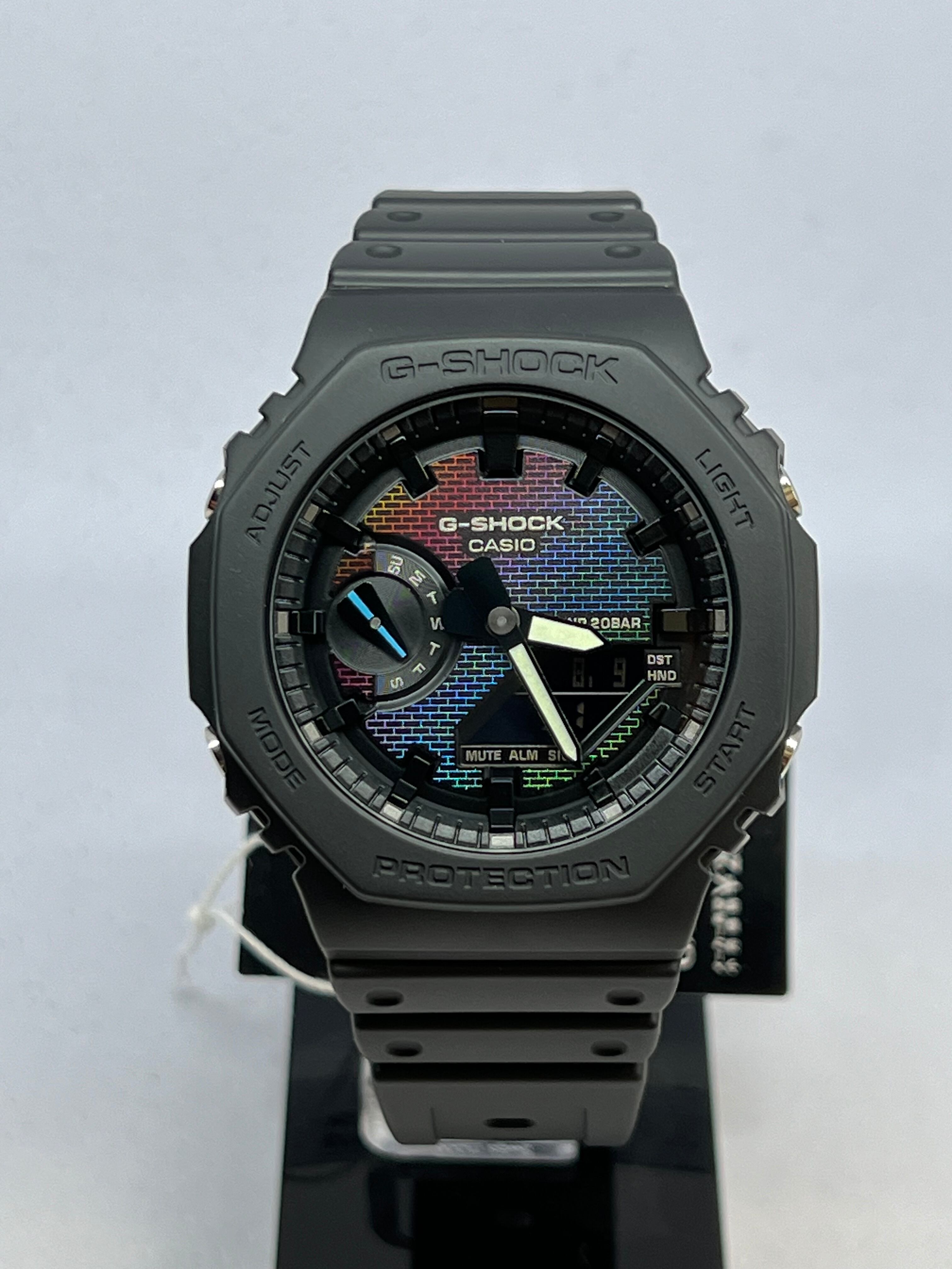 1983年の発売以来、飽くなき強さを求めて進化を続けるタフネスウオッチG-SHOCKから、文字板に蒸着を施したRainbow Brick Wall seriesです。
