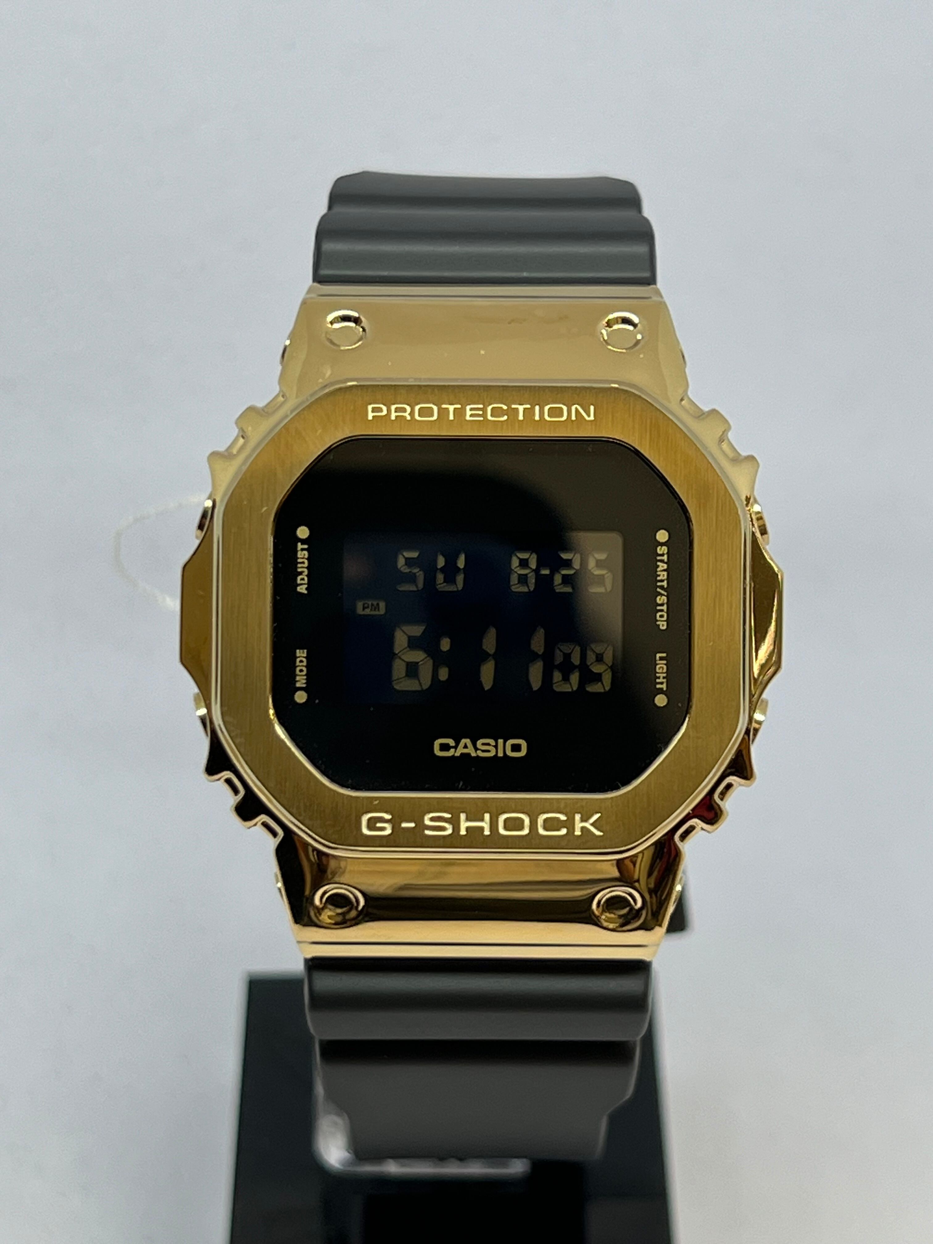 1983年の発売以来、飽くなき強さを求めて進化を続けるタフネスウオッチG-SHOCKから、メタルカバードシリーズをベースに人気のブラックとゴールドカラーを採用したモデルです。