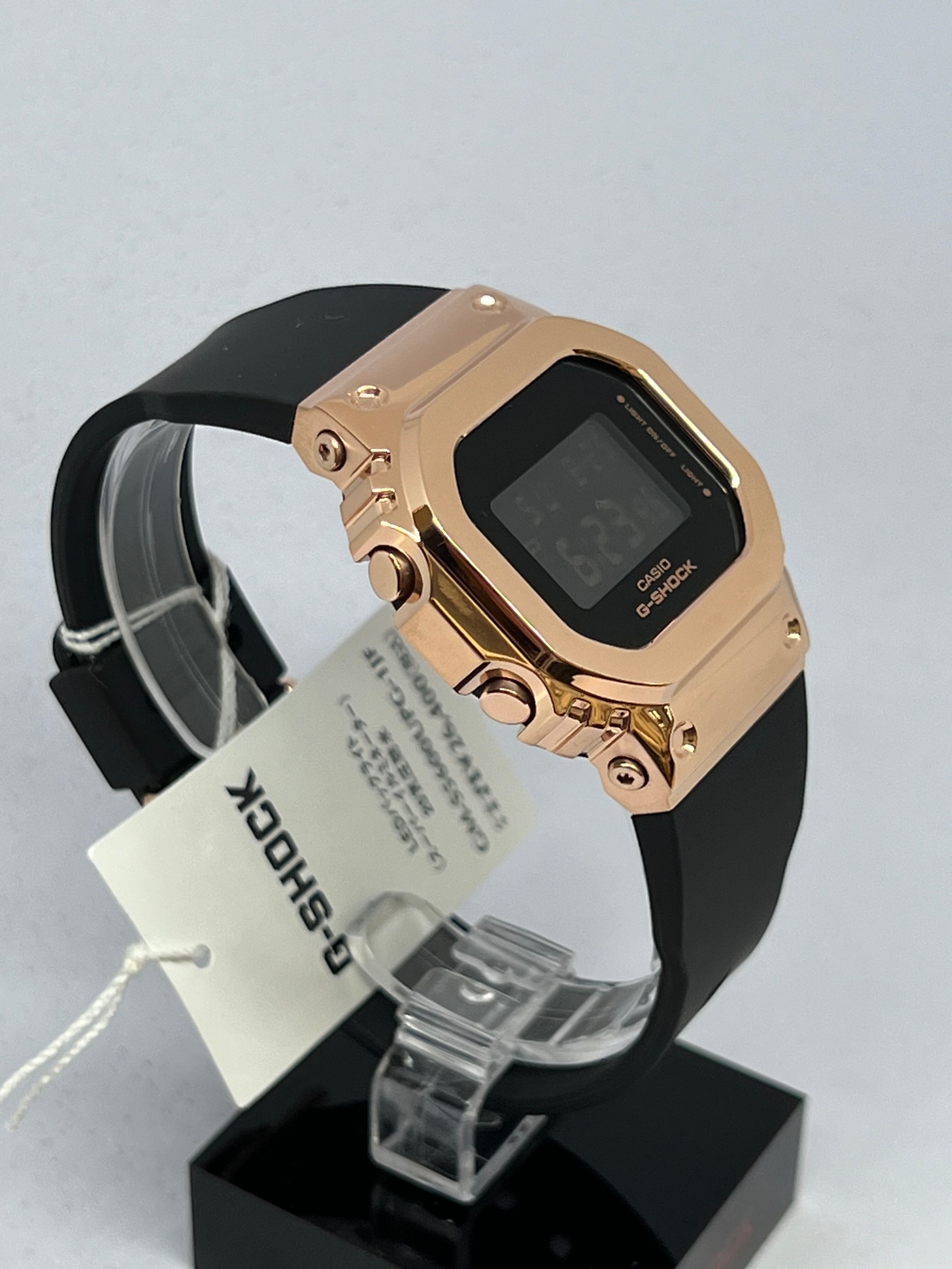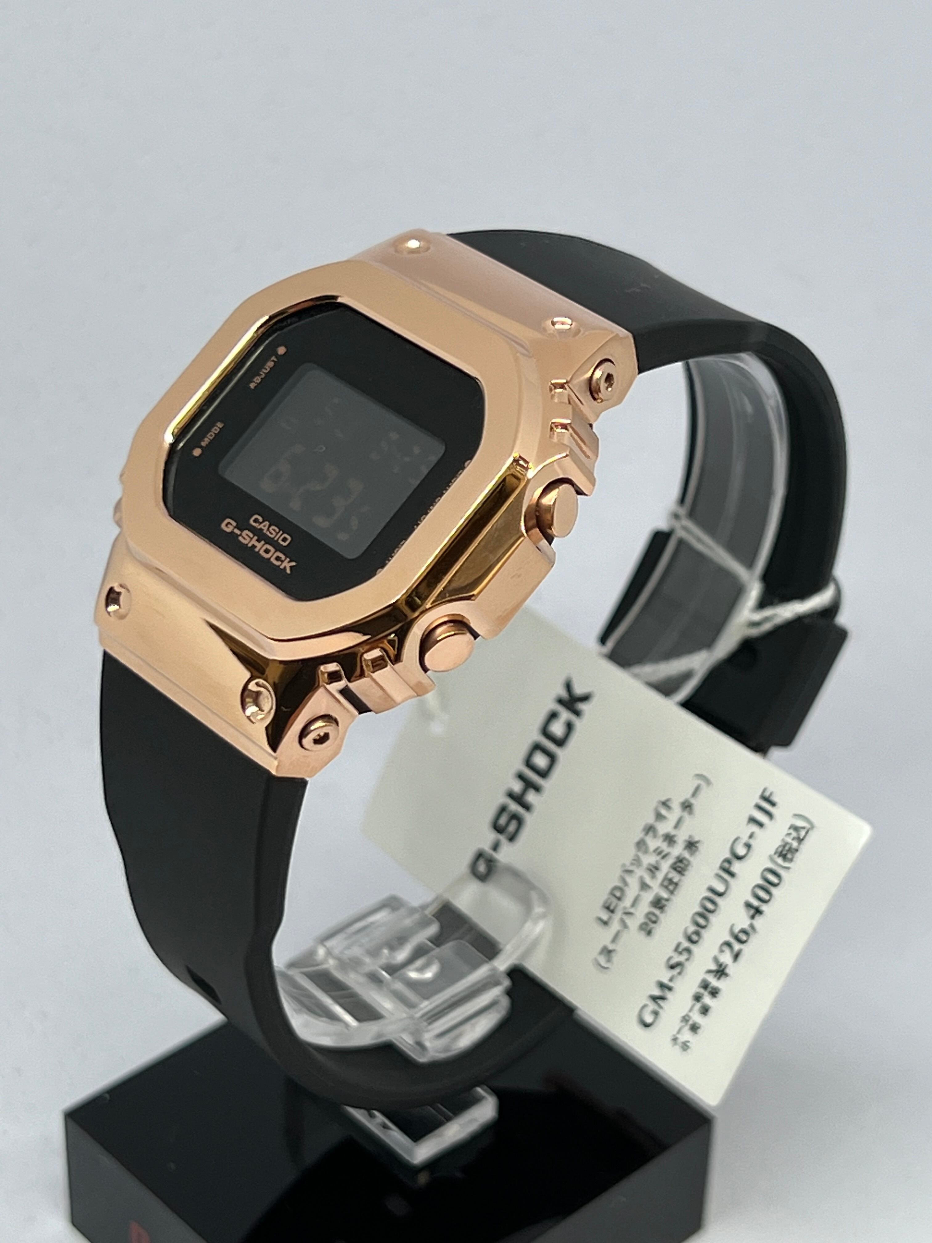 ベゼルカバーにはピンクゴールドIPのメタルを使用、バンドにはブラックをあしらったエレガントなG-SHOCKです。