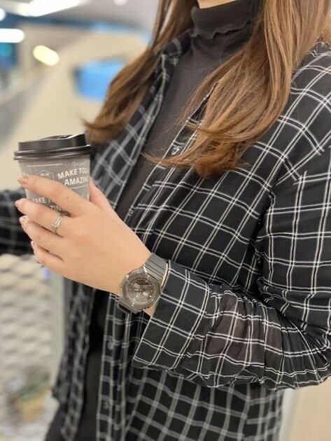 GA-2100シリーズの中でも、どんなシーンにもフィットするよう小型化、薄型化に徹底的にこだわったGMA-S2100をベースにベゼルカバー部分に硬質なステンレス素材を採用し質感を向上。文字板に沿って円周上に入れたヘアライン加工により、ベゼルのIP加工の濃淡を表現しています。また、フラットな文字板にも蒸着処理を施し、スタイリッシュな印象に。更にインデックスにはミラー加工を施し華やかさをプラスしています。初代から受け継がれるコンセプトはそのままに、時計としてのクオリティを追求し外装や装着性の進化に磨きをかけたスタイリッシュモデルです。