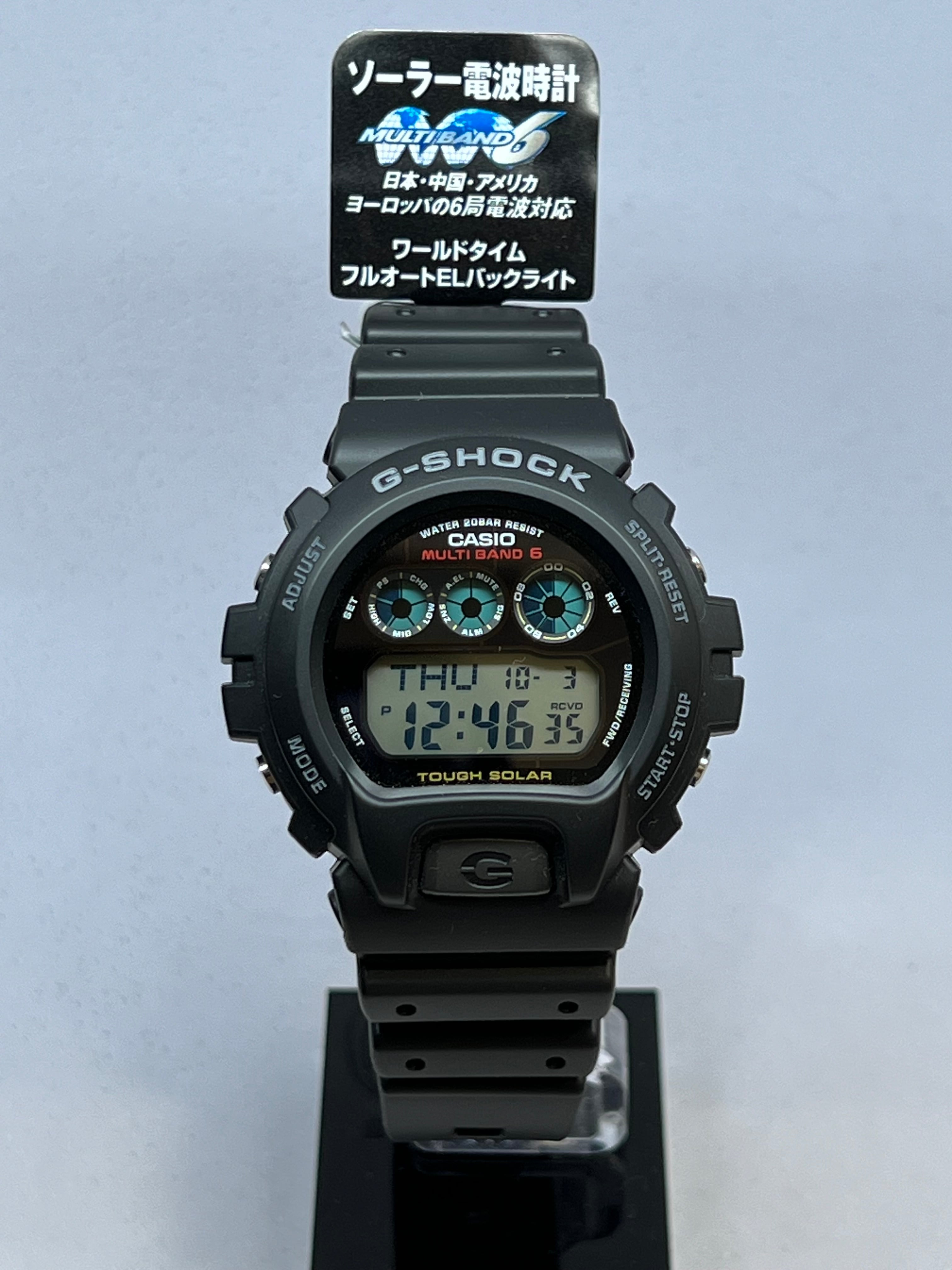 様々なコラボレーションモデルに採用され、ストリートファッションなどで人気のDW-6900が、世界6局の標準電波を受信するマルチバンド6を搭載。デザイン・ケース径はそのままに、電波ソーラー化を実現しました。蛍光灯のわずかな光で駆動し、日本(2局)、中国、アメリカ、イギリス、ドイツの6局の標準電波を受信します。また、液晶を従来モデルより大きくし、視認性を向上させました。シンプルなカラーリングで、ベーシックなデザインに仕上げています。