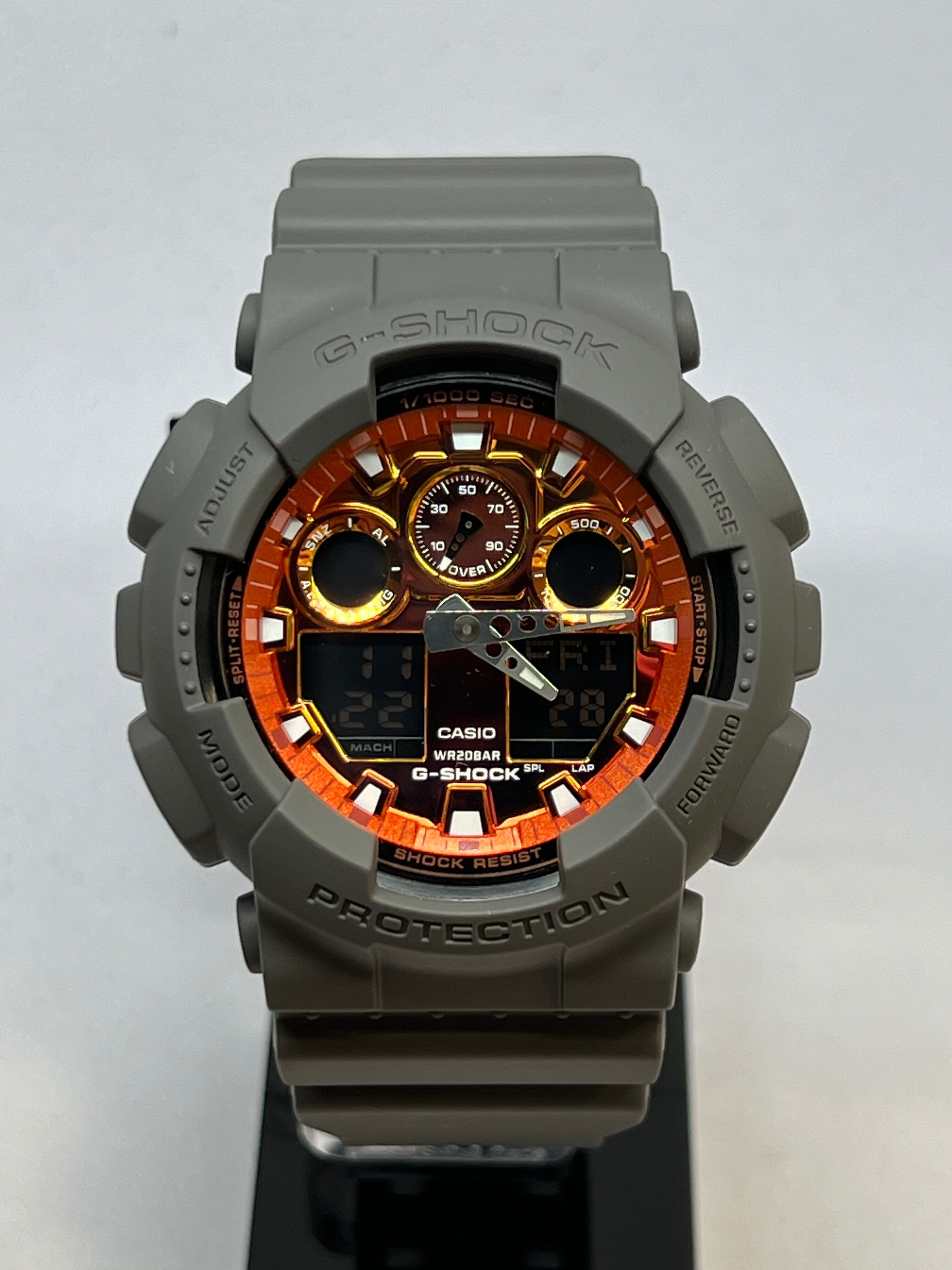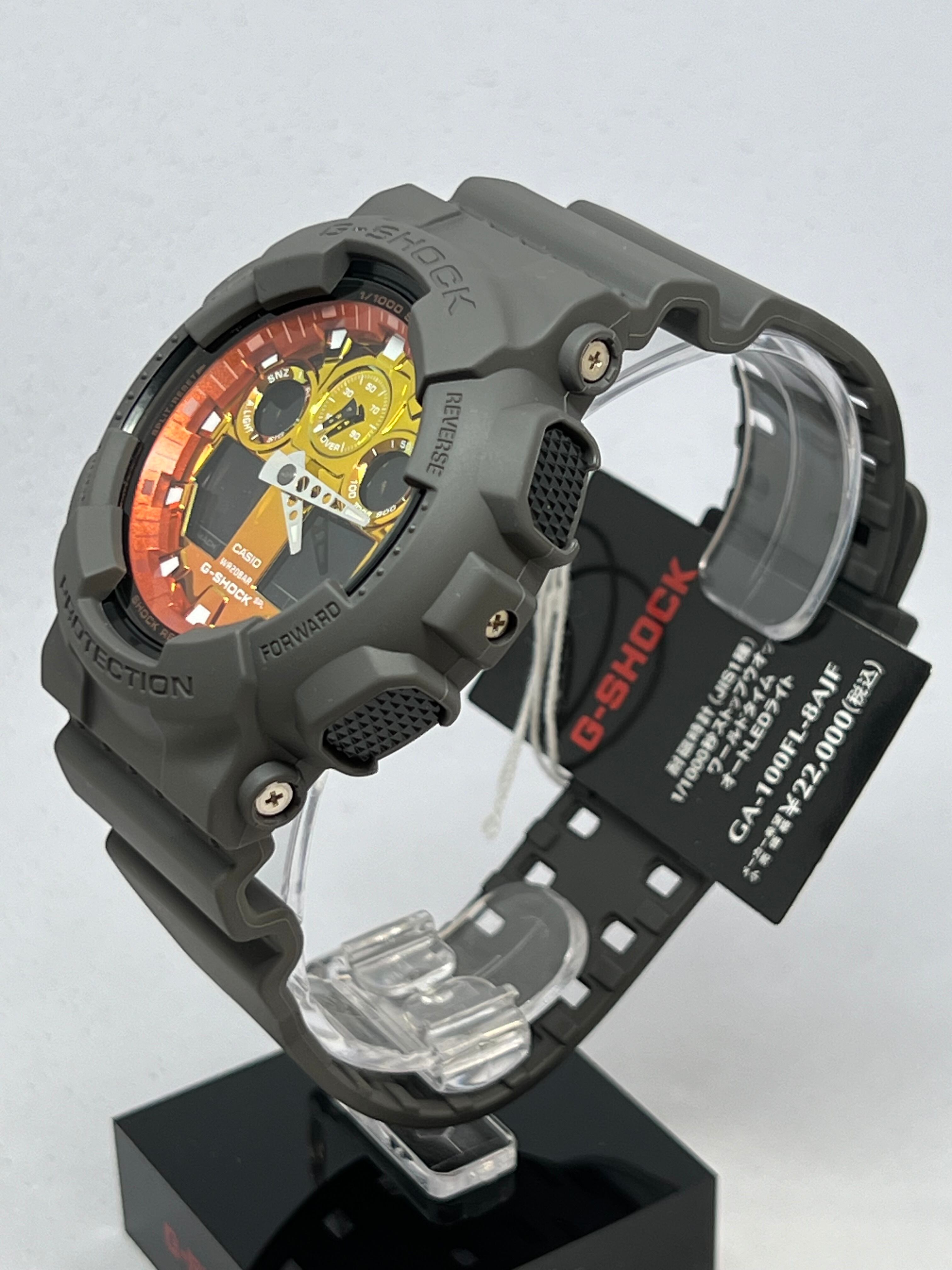 グレーボディに黒煙をイメージしたブラックグラデーション塗装を施し、低い温度の炎をエネルギッシュなオレンジのグラデーション蒸着文字板で鮮やかに表現しました。
