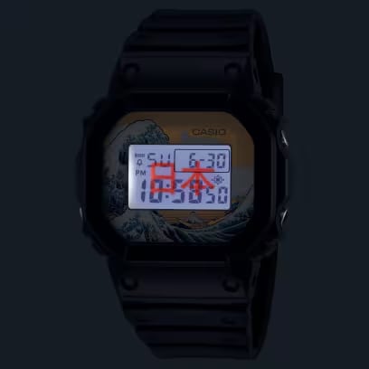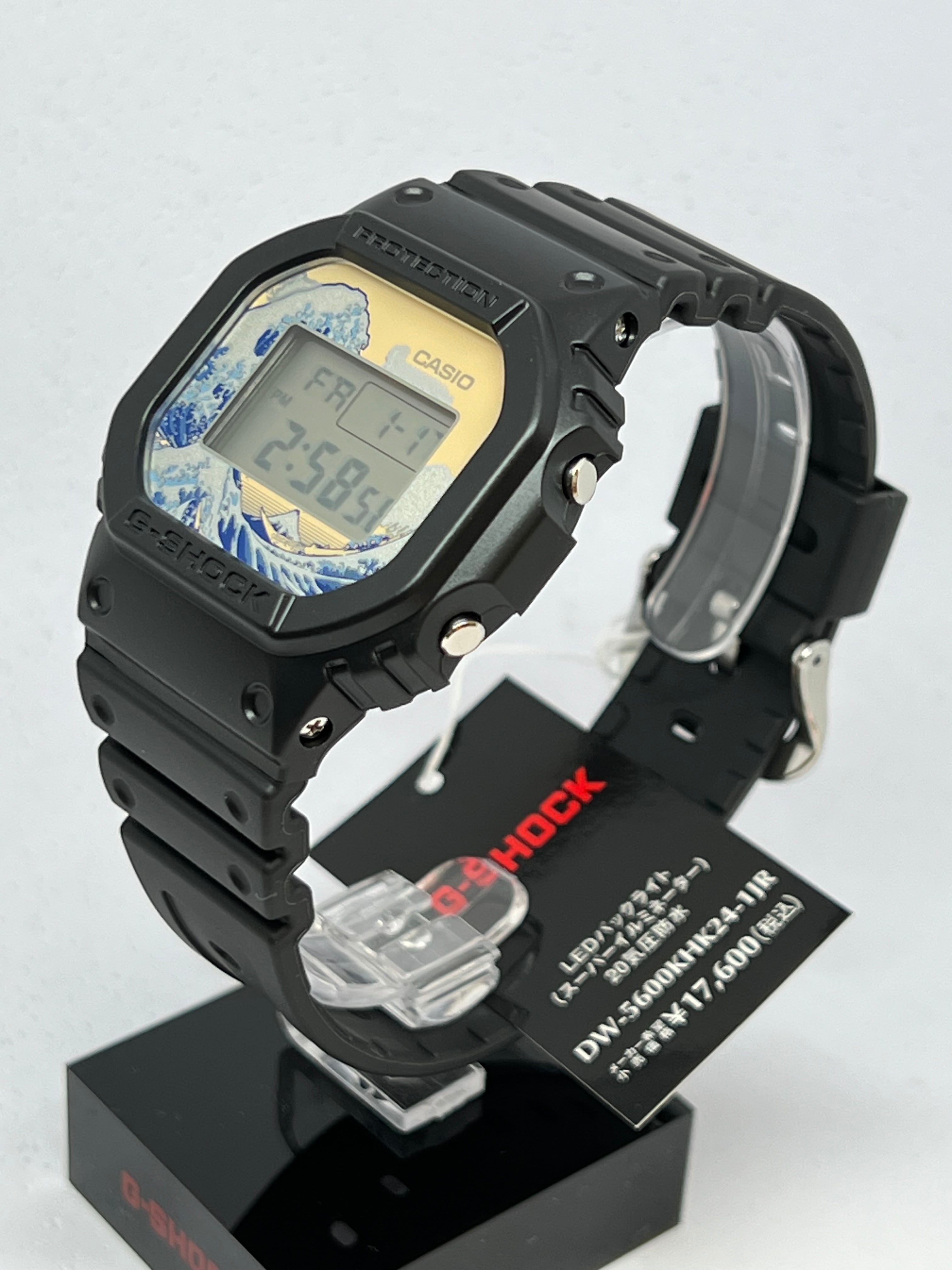 ベースモデルにはアイコニックな定番デジタルDW-5600を採用し、文字板に大胆にデザインしました。