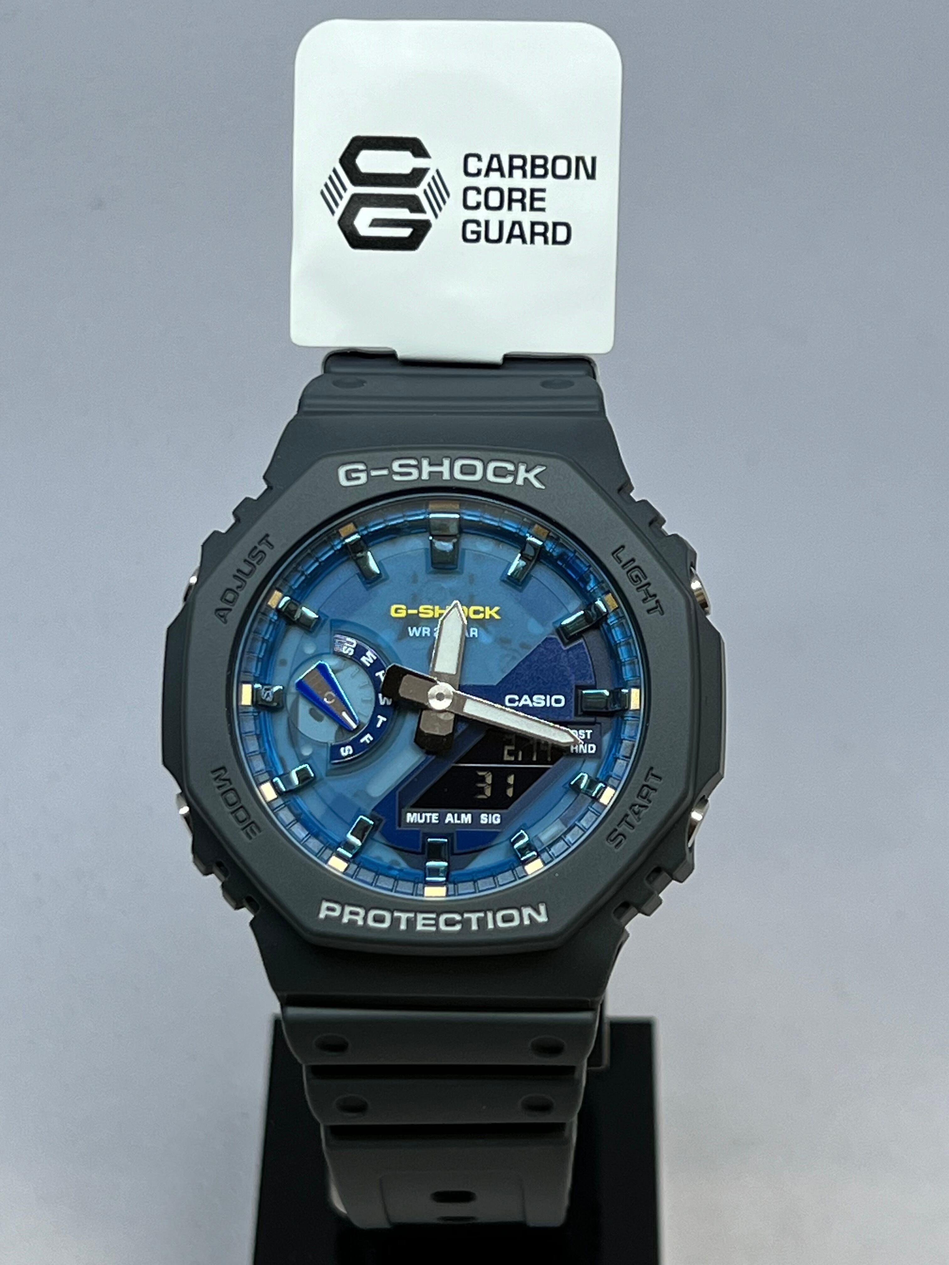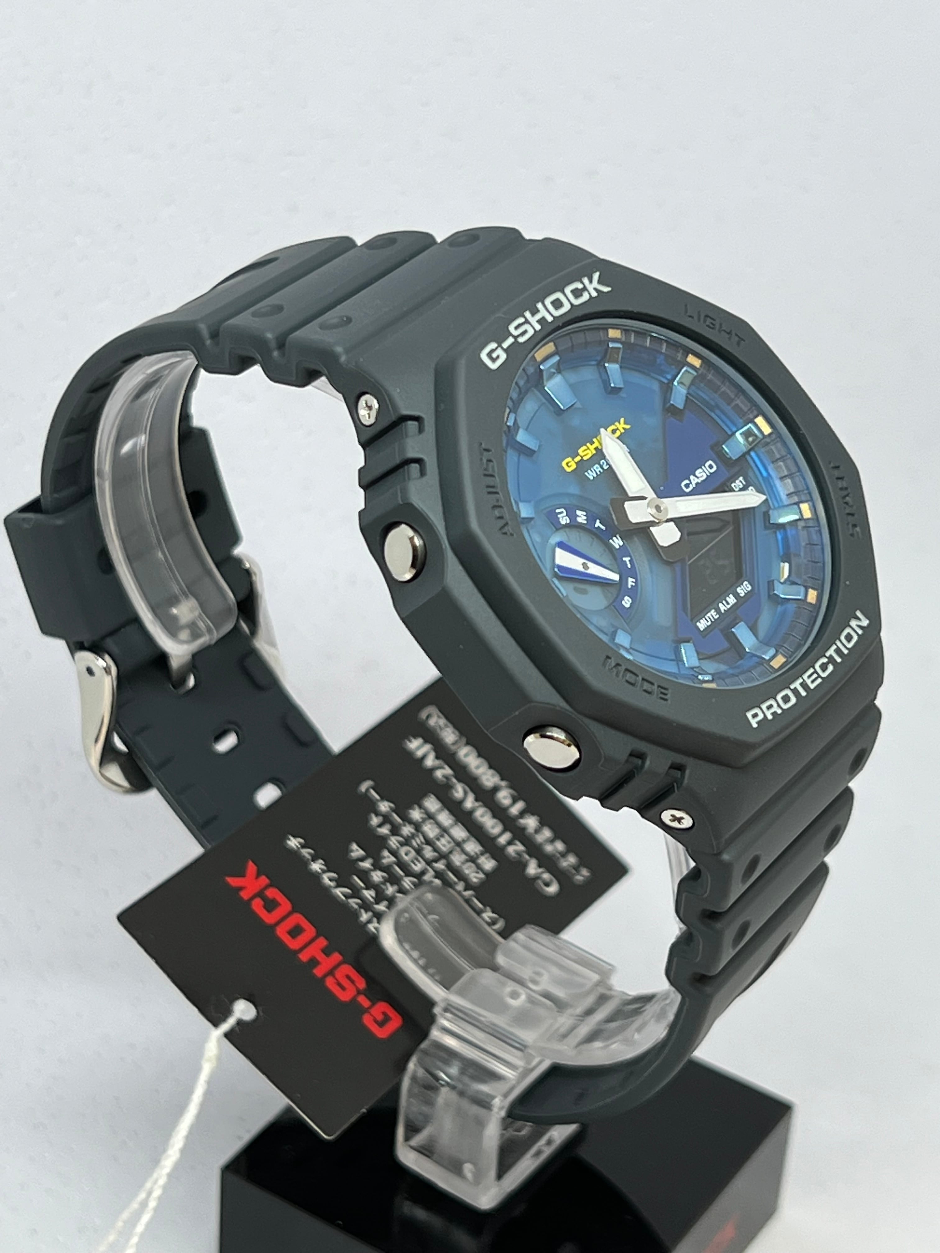 ベースモデルはオクタゴンベゼルの薄型ケースGA-2100を採用。